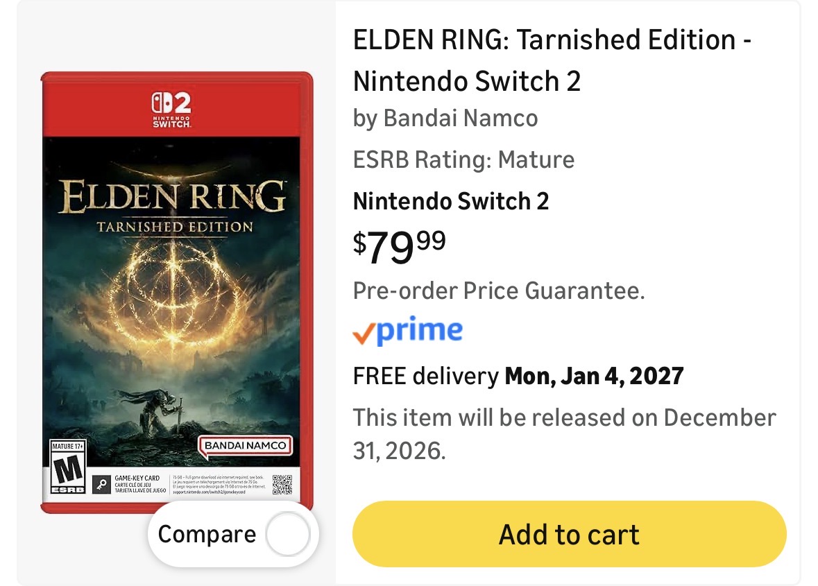 >$80 elden ring bundle on switch 2this is bad >$100 elden ring bundle elsewhere this is exactly what gamers want