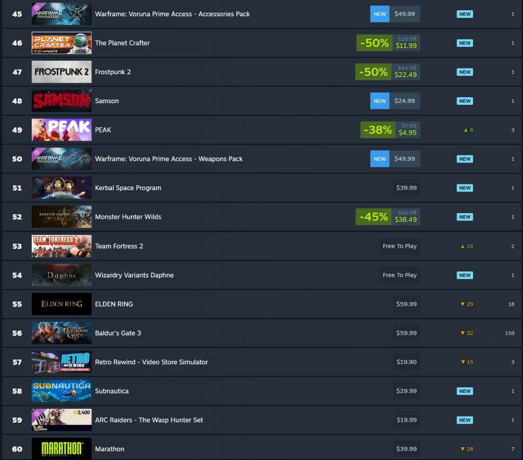 >>736688481Arc raiders and poor marketing is the only reason. Other than that, some games just slip through the net
