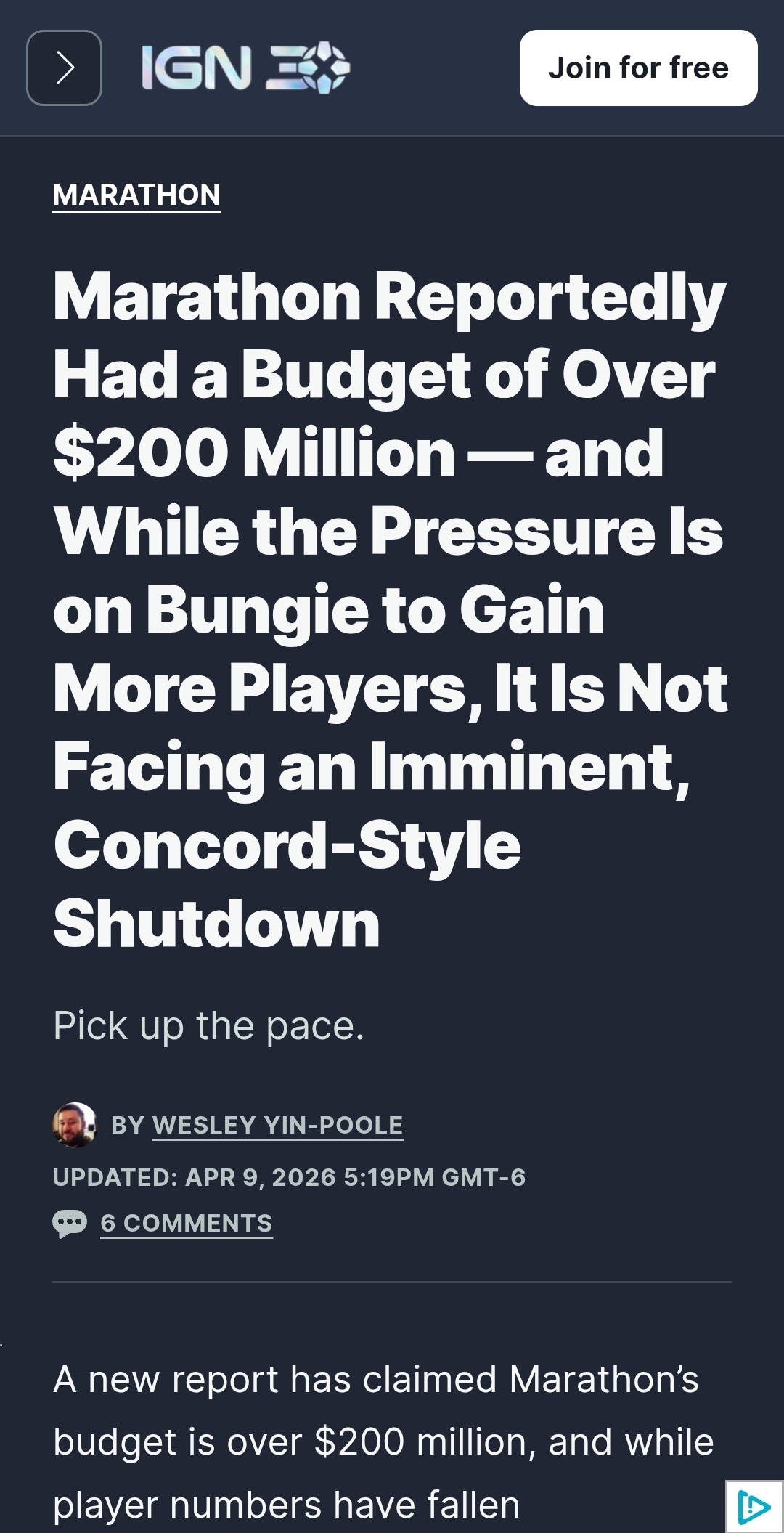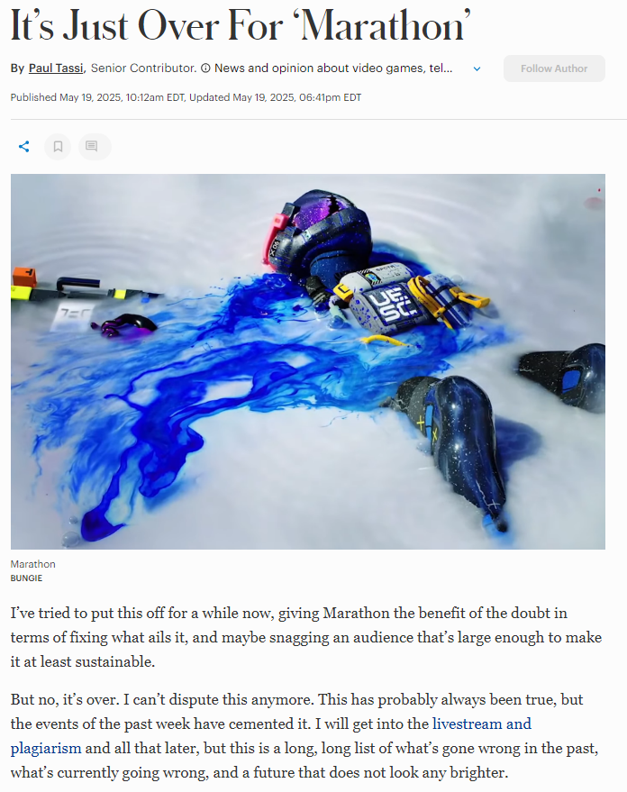 Marathon hasn't even made back a quarter of its budgethttps://www.forbes.com/sites/paultassi/2026/04/09/checking-in-on-marathon-a-month-after-launch/