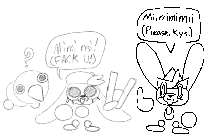 I don't knowI've never really tried to draw a dividing line across all characters to define what is and isn't bunny. It seems like a waste of time, it's not like it's the character's bunny-ness that makes them memorable. Like, Animal Crossing has a special place for me, so in order to meet the criteria of this thread I could pick some cute rabbits from that, like Ruby or Carmen. I like pokemon, and there a bunny themed pokemon. I like Sonic, and there a bunny themed sonic characters. But none of these characters are that great separated from their own worlds, and grouping them all together for a circlejerk just feels lame.