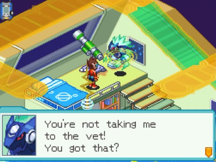 I had a vision for MMBN7 once>Lan's son Patch is a bully at school because his dad is a big shot and they're rich so he treats others poorly.>Realizes he's lonely.>Asks dad for his custom Navi.>Lan punishes Patch by giving X to his soon to be rival.>Patch gets depressed, feels betrayed etc.>Lan gives him Zero.exe instead. A virus turned navi in a reformatting experiment to try and solve the virus issues.>Patch and Zero.exe are both treated with mistrust. Other navis don't trust Zero because he was a virus.>Slowly learn to redeem themselves and save the world.>Megaman Battle Network Z (the 7 is inside the Z in the logo)