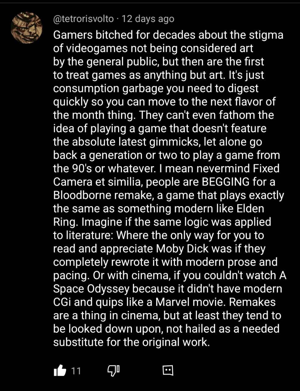 Video games stopped being art the moment its retarded consumers started yelling for more and more demakes.