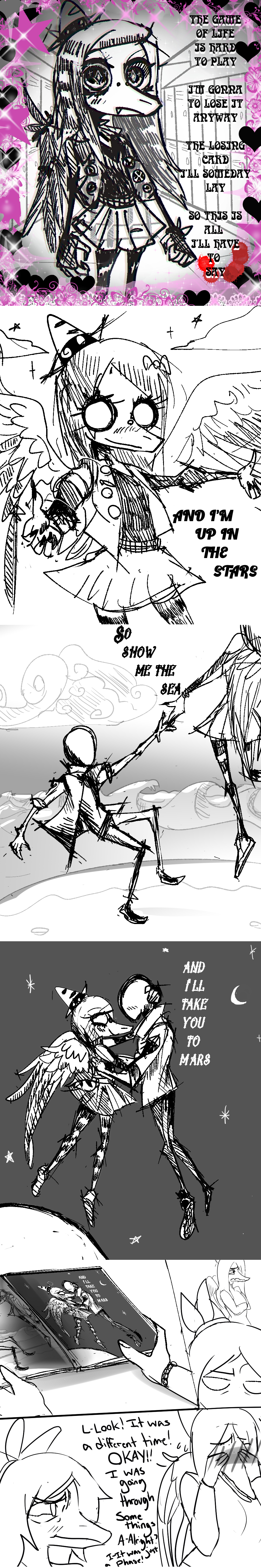 >>736746982Why the hell not?>point and click adventure game mechanically inspired by Lucasarts games and IHNMAIMS, with a tone similar to Drowned God and Bad Mojo>player character is Jax, taking place after episode 7, who is the only character who notices that the Circus is slowly turning visceral and morbid>has an insanity meter where game over is Jax abstracting, and you have to calm yourself down in private (Jax will refuse to do it around the others)>is given multiple dialogue options, which all contribute to an unseen value of being either kind, mean, or conspiratorial>can’t just be nice because not only will most of the cast not believe you, but since the character is at a “crossroads”, being too nice will make him stressed from overwhelming guilt>have to find and solve puzzles when Caine sends you and the cast on adventures to but can’t mess up too many times or Caine will notice you are missing
