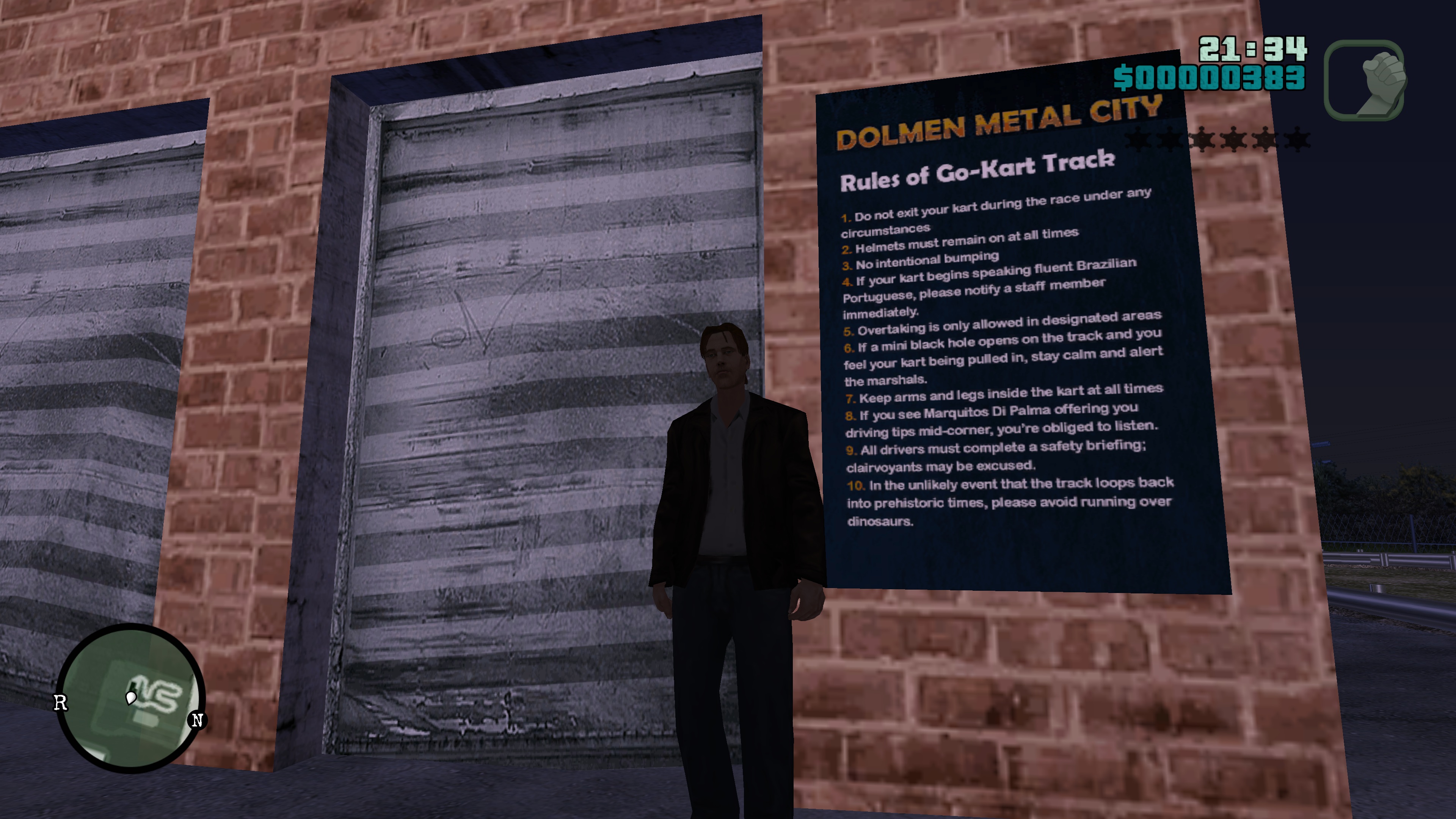 >did the shootout mission with the mexican gang>complete it>hit me baby one more time plays on the radio>jumped off the highway perfectly>about to save game but decide to see the kino city>drive back>just as I enter the house the game crashesamazing