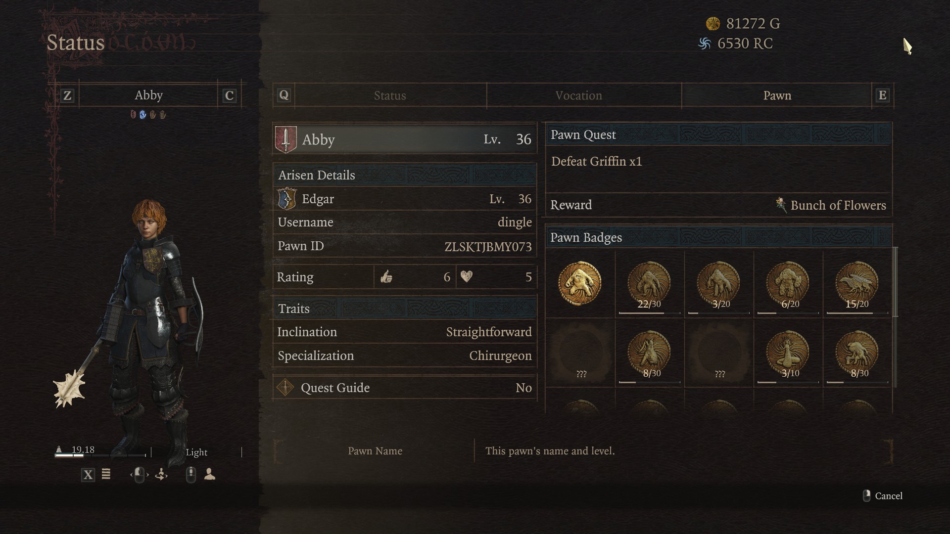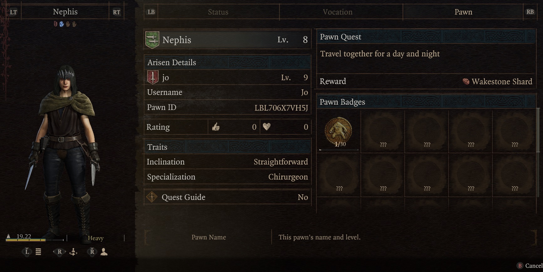 POST YOUR PAWN(S) HERE>Game>System (PC, Console etc.)>Pawn Name>Pawn LeveI>Pawn Vocation>Pawn ID>Optional Info (Boons, Inclinations, etc)