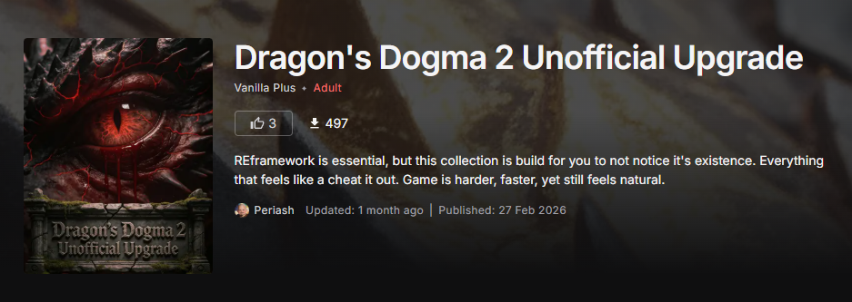 >>736818160Essential modhttps://www.nexusmods.com/dragonsdogma2/mods/196