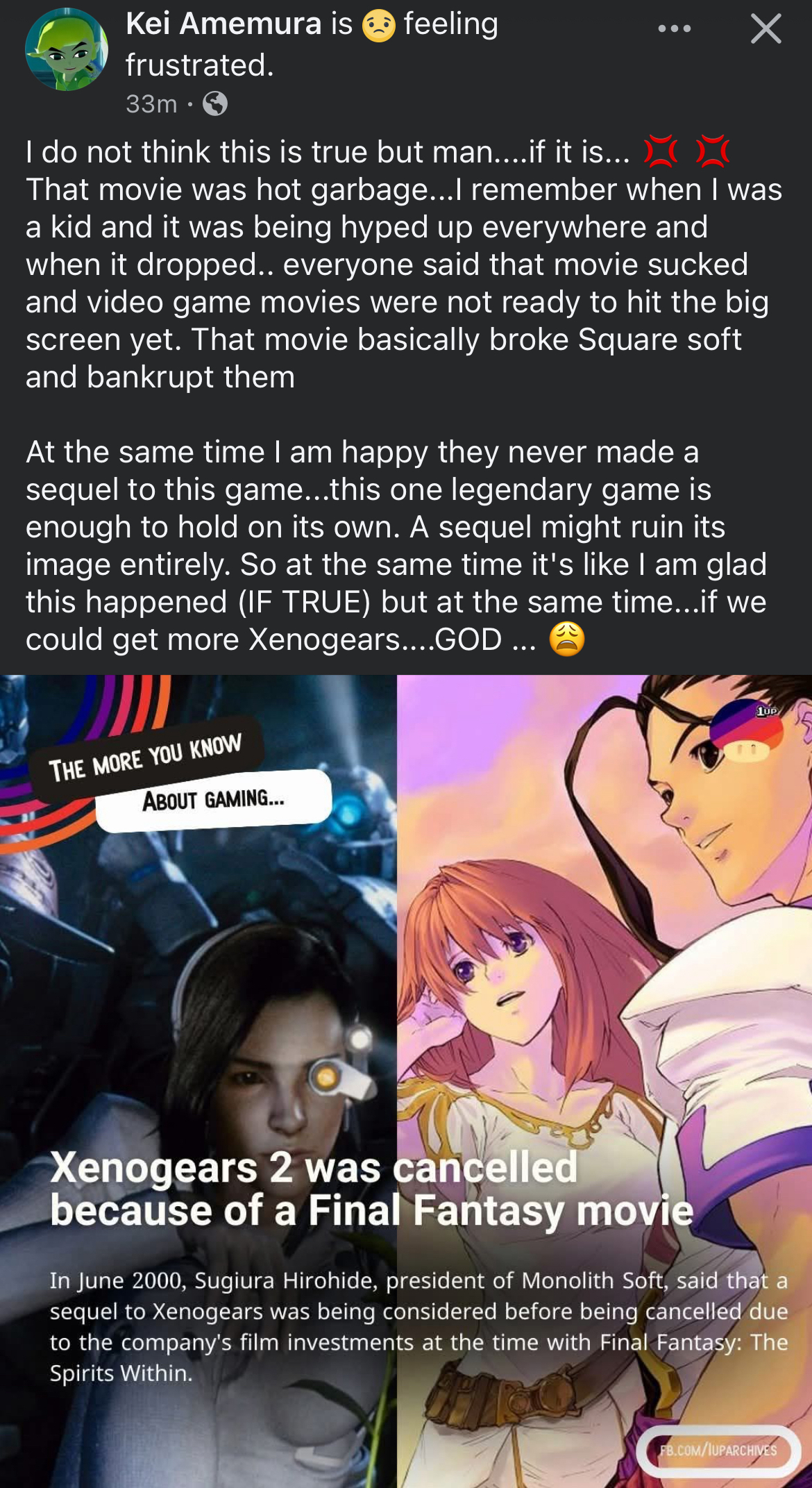 >>736754664Tfw no Xenogears 2 because of this bullshit over ambition of a movie >>736754638
