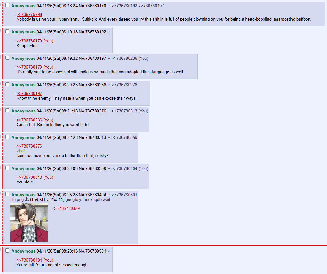 >>736780236Go on bot. Be the indian you want to be