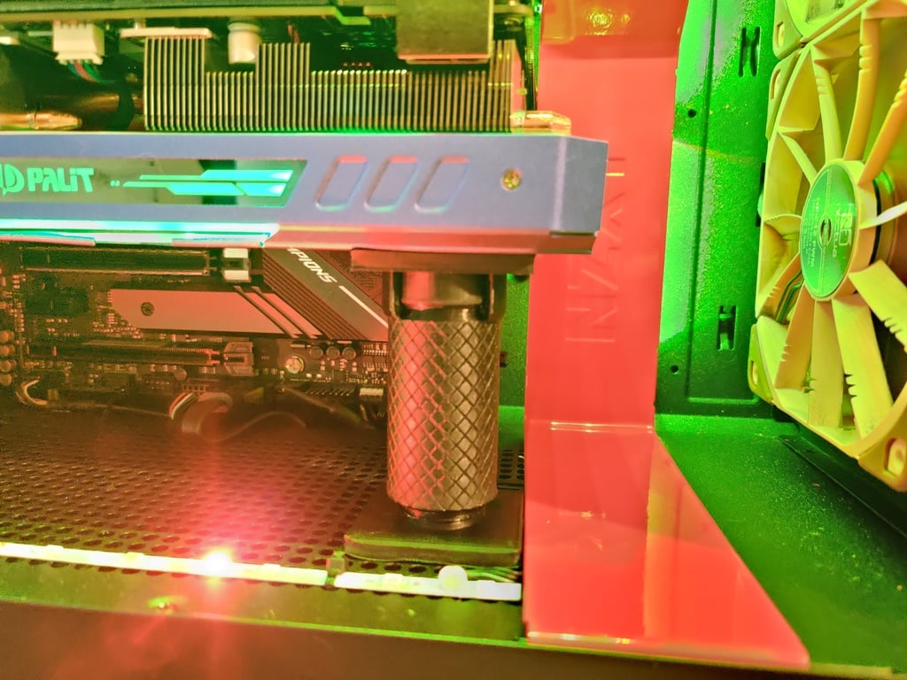 >>736800383if you are using a mechanical hard drive then the longevity of parts is not your priority of any kind at allif you want to keep your pc in a normal orientation but are still worried about gpu sagging (as you should, shit's heavy now that they're the size of a state), just steal legos from your kid and build a supporting pillar