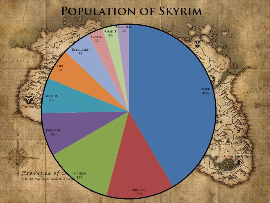 >>736800608I don't trust this image, i highly doubt it's in any way accurate and representative of Skyrim's actual demographics