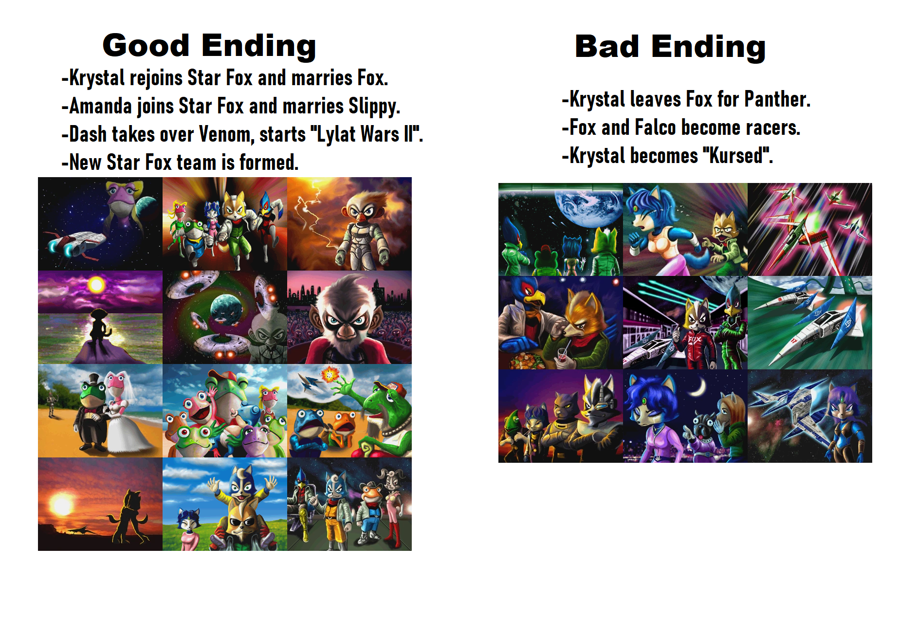 >>736817318Fox and falcon becoming racers is ultimately a good ending. Krystal has too much baggage anyways.