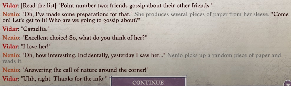 >>736826151>Nenios story is completely serious from the beginningNenio's story doesn't fucking exist, it's just one event per act until you do the Enigma. And no, it's not serious at all, it's all meant to be funny until you get to the Enigma, and even then Nenio's clown ass personality puts a damper on that