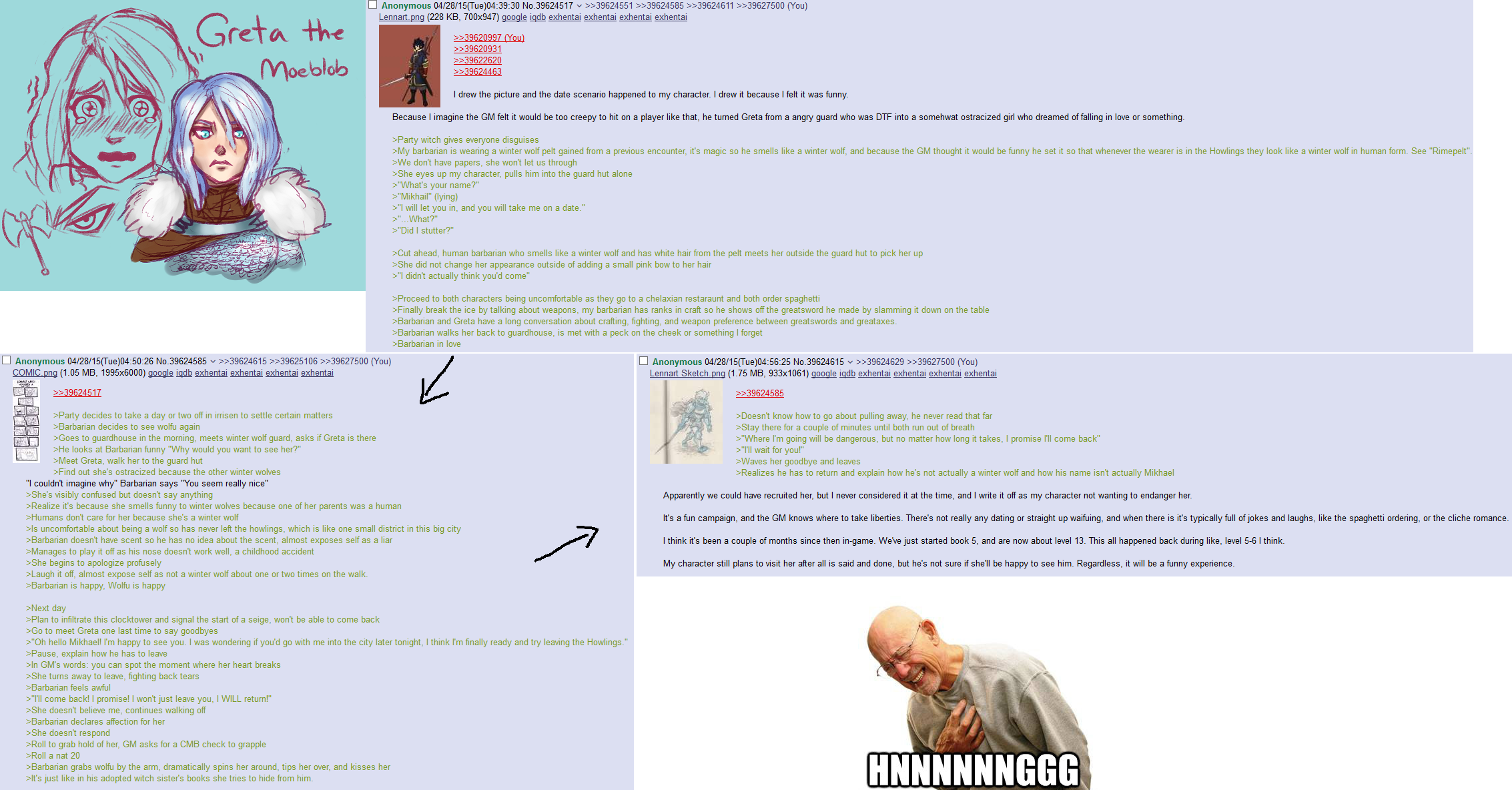 >>736814142There's everything wrong with her writing, and none of it has anything to do with being "reddit". She's obnoxious, clearly written to be "funny" first and foremost rather than an interesting character, her motivation, such as it is, is completely retarded on its face and makes no sense within its own context, she is so abrasive, and cares so little for the main objective, her fellow adventurers, the fate of the world, or the protagonist, that her inclusion in the party is odd to begin with, she is utterly tone-annihilating with her dumbass interruptions during every bit of important dialogue, her quest involves the hands down worst dungeon of them all, and worst of all she's not even funny.Like, many of these things could be forgiven or glossed over if she was just the dedicated comedic relief character, and her shit's all retarded, but at least she makes you laugh. But no. Her brand of humor is literally decades out of date, hearkening back to the lolsorandum internet humor of the late 2000's, making it far too transparent that you're just reading the writer's failed attempt at humor.