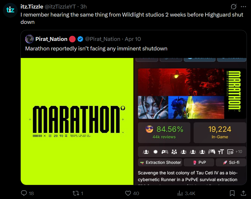 Reminder Bungie got bent over hard after Destiny content they released (sold over 5x what Marathon did btw) underperformed
