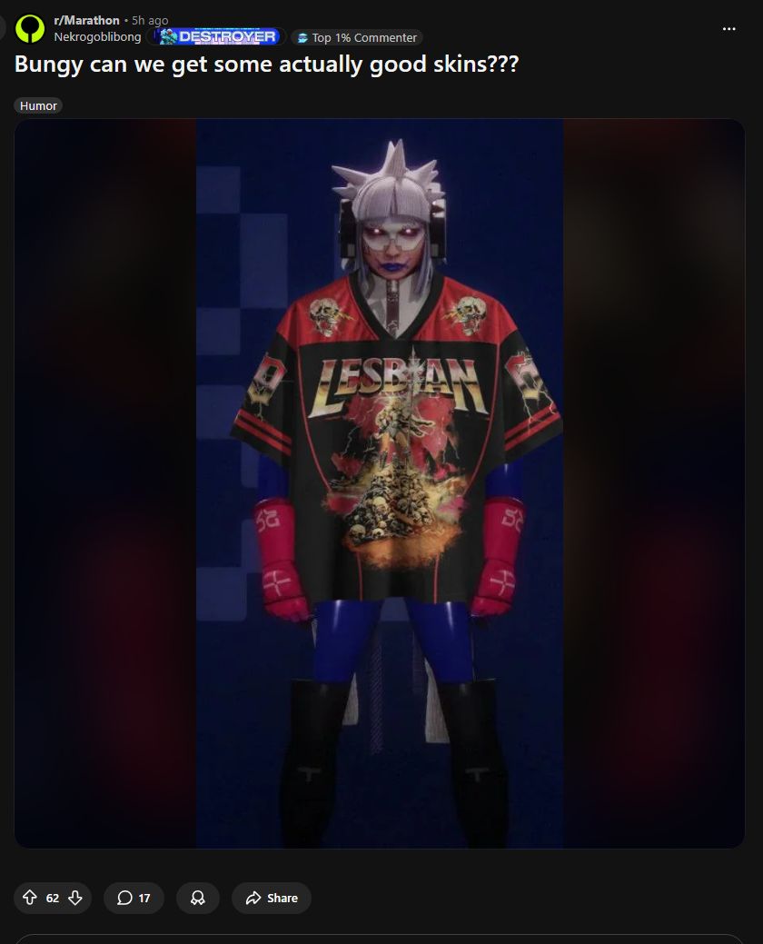 I have to say that Marathon (2026) is such a bastardization of the original trilogy. It honestly disgusts me that someone thought that Artstyle was high brow when in actuality its very fucking unpleasent to look at.atleast with destiny they had a distinct style for different factions and reoccurring areas.