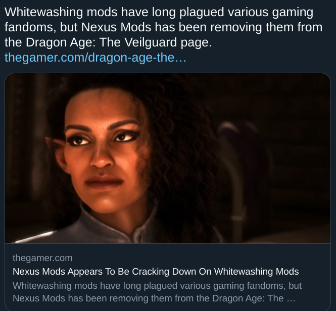 >>736853295>if you don't like all the nig-...I mean lovely black people in your games, mod them out, goys!Sure!>NOOOOOOOOOOO YOU CAN'T DO THAT! IT'S...ITS WHITEWASHING! You niggers do shitstaining so why should I care what you think?