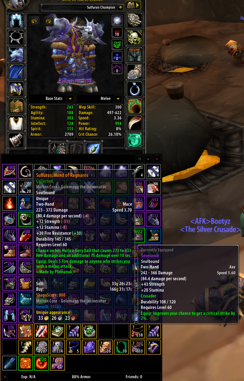Here my highest geared character. I have a Sulfuras and a Severance and Dark Edge of Insanity.I never finished a Naxx though.
