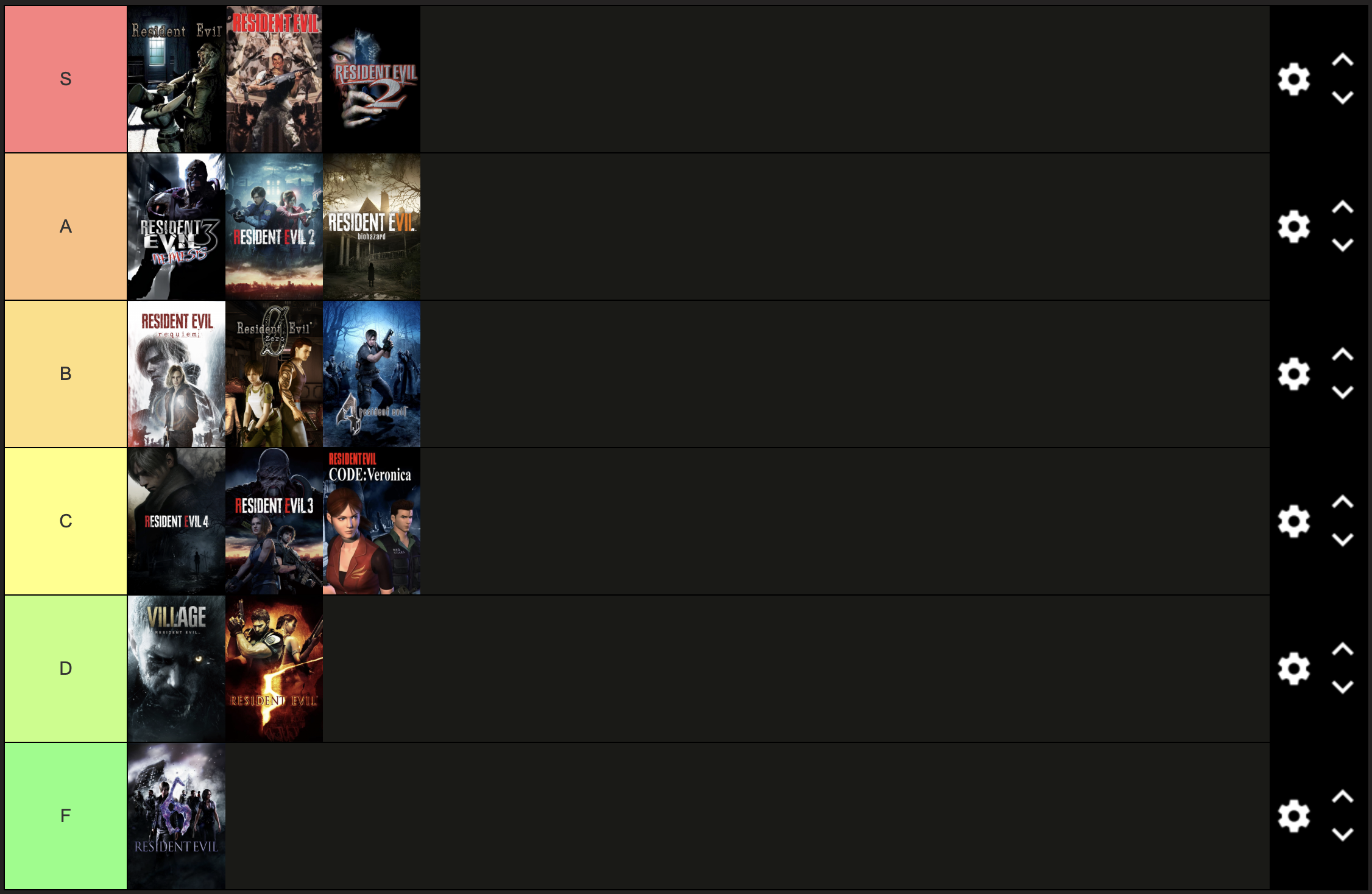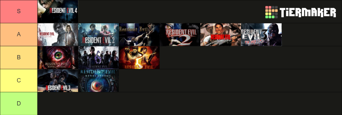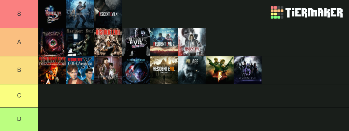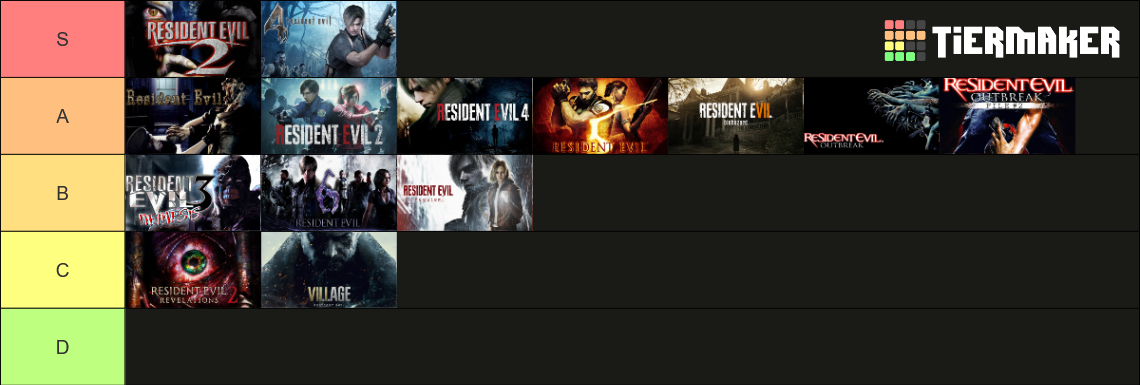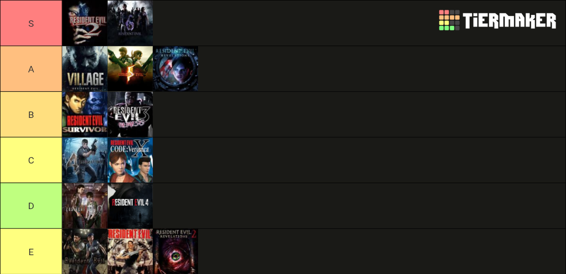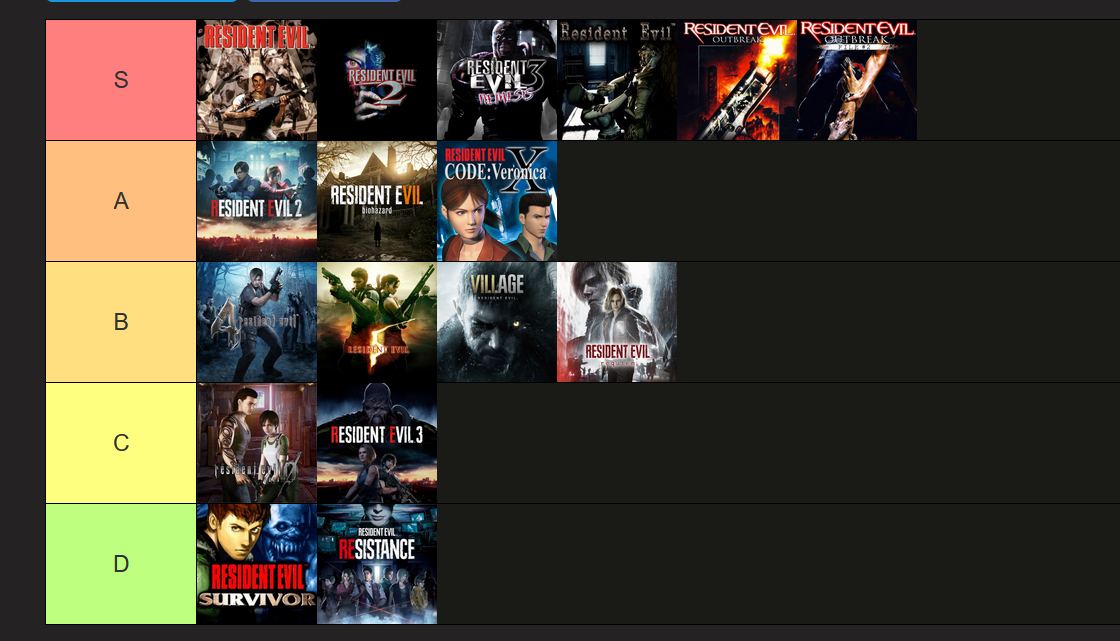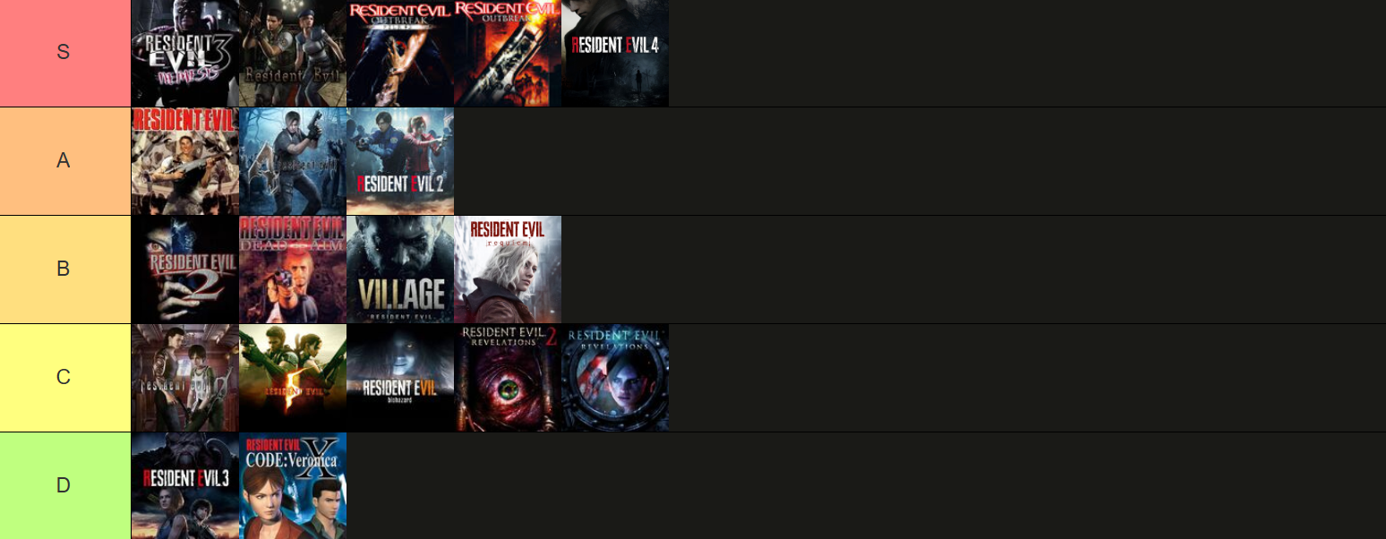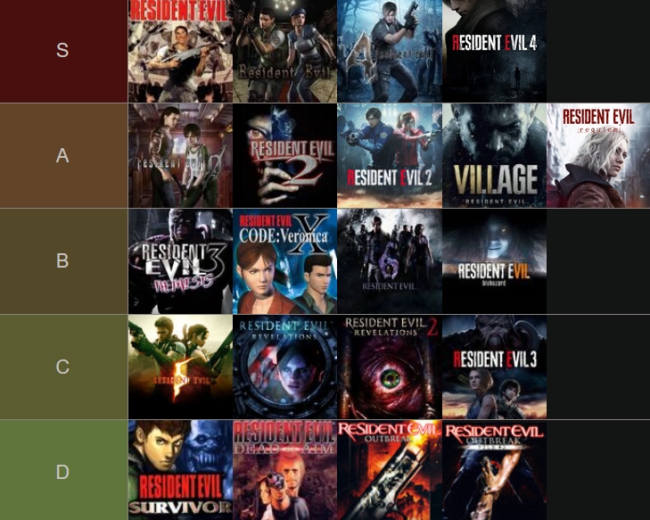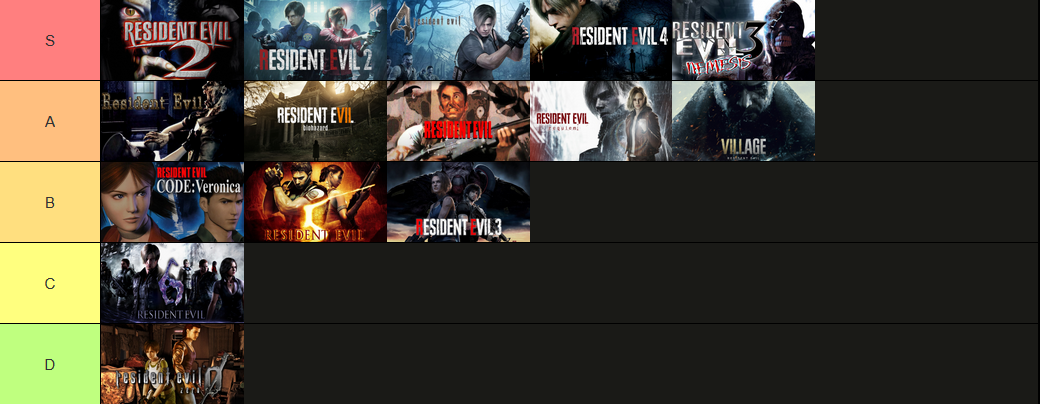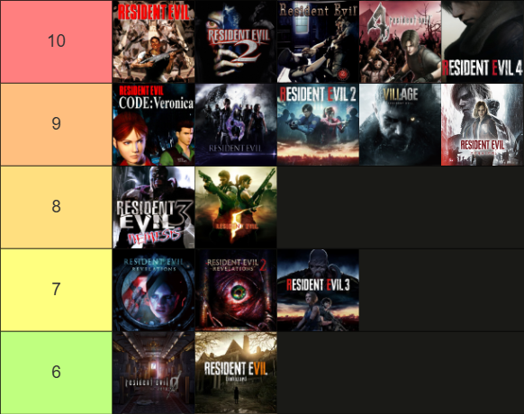 Here's my tierlist of all the resident evil games I've played so far.