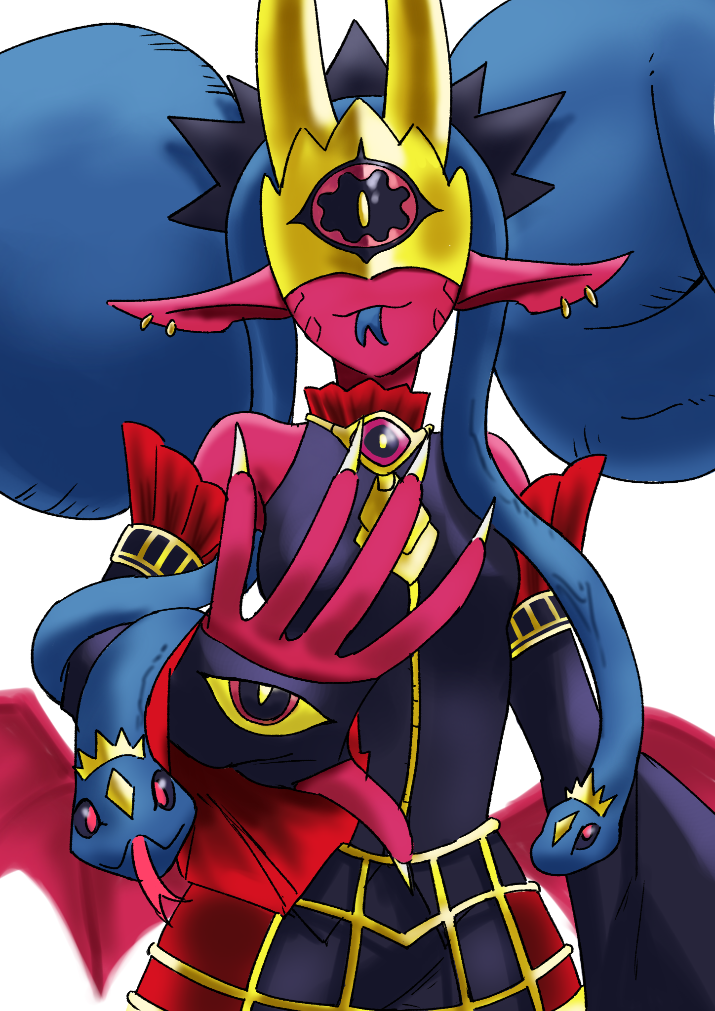 >>736861803>Goes from snake lady to Medusa-themed to...cyborg triceratops where her actual face is in the mouth.Digimon always goes into crazy, weird or both.