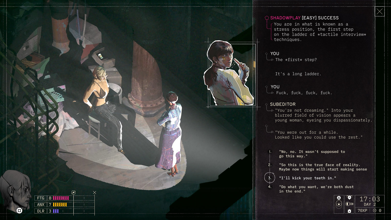 I really like this game because it's genuine Even though the writers are commies they make fun of it and are aware of how flawed this ideology is.They even make fun of the game itself and how catastrophic the process of making it was "the computer logs in the dark room"It points at the flaws of each political ideology, even if you pick the centrist path it makes fun of youAll that without being a contrarian It's a lightening in a bottle in a world full of games made by marketing fags and excel spreadsheets.I liked esoteric ebb too, it's really good.The next Disco Elysium will never be made by a major goyslop studio or the offshoots of the original groupBecause they're trying to catch that lightning in the bottle again, DE succeeded because it was something new Something sincere and honest.The thing is, some people have many great ideas but it's very rareWhat's more common is many people have a single good idea for a book, game, painting or musicAnd when they make it they will chase that dragon thinking they can make something as good again, but that good thing was a culmination of life experience, inspiration and ideas that take a lifetime to put together.