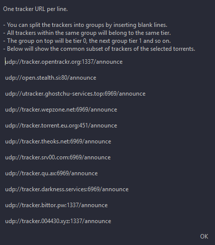 >>736874073I think some of these guys don't have torrent trackers in their clients. It works for mehttps://github.com/ngosang/trackerslist#lists