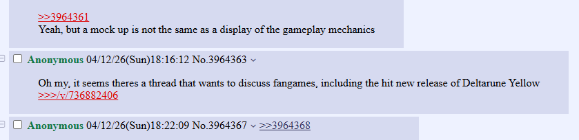 >>736884075I'm just here to discuss video games on the video game board of 4chan occasionally. Is a deep or complex reason really needed?