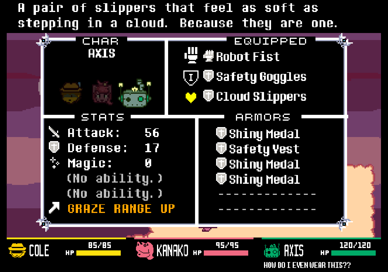 also, I like the unique dialogue for equipping different things
