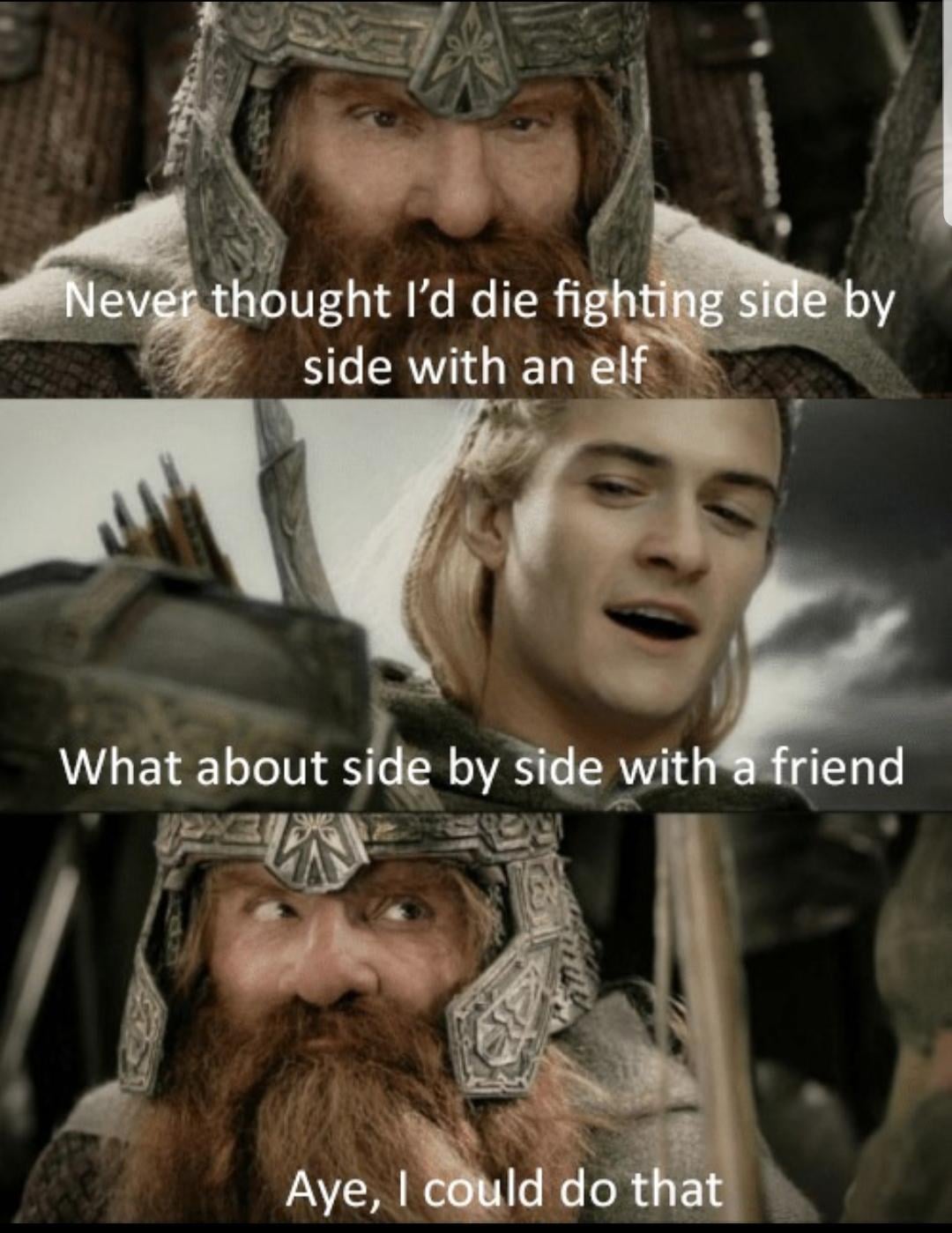 >>736887910>That's real sweet, anon>Eventually the relationship between you two would turn into something like picrelwould be cool. I can imagine being in that point in a friendship where you can talk shit to eachother after a certain point jokingly, but maybe things have been rough and your slipping into a bit more numb state of mind. You show up to the usual watering hole after work, order your drinks and just space out while letting your buddy air out his frustrations with humanity. It's not like you can blame him at all, he puts up with a lot of nonsense. Either way you can't really bring yourself to pay attention this time, until you noticed that he's stopped talking, and is looking at you with concern. He doesn't address it directly, he just does his best, but possibly awkward attempt at steering the coversation in a different direction>"All that aside anon... how are things with (interest of yours he took the time to remember)." >His attempts to coax conversation out of you are obvious, but sincere all the same. You can't help but feel slightly better seeing that.I don't know man. I wanna be friends with the jin. Encourage him to face his fears over humanity but also be uplifted by someone who cares about the people around him in his community. Maybe spot him coming up with a crazy idea at some point and be good enough friends to tell him to get his head out of his ass.