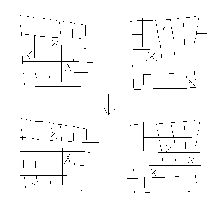 >>736894074uhhh I think it was something like this, imagine the two grids being like book pages and when you slam them together they swap marks, if that makes sensemarks not actually accurate to game, just for illustration