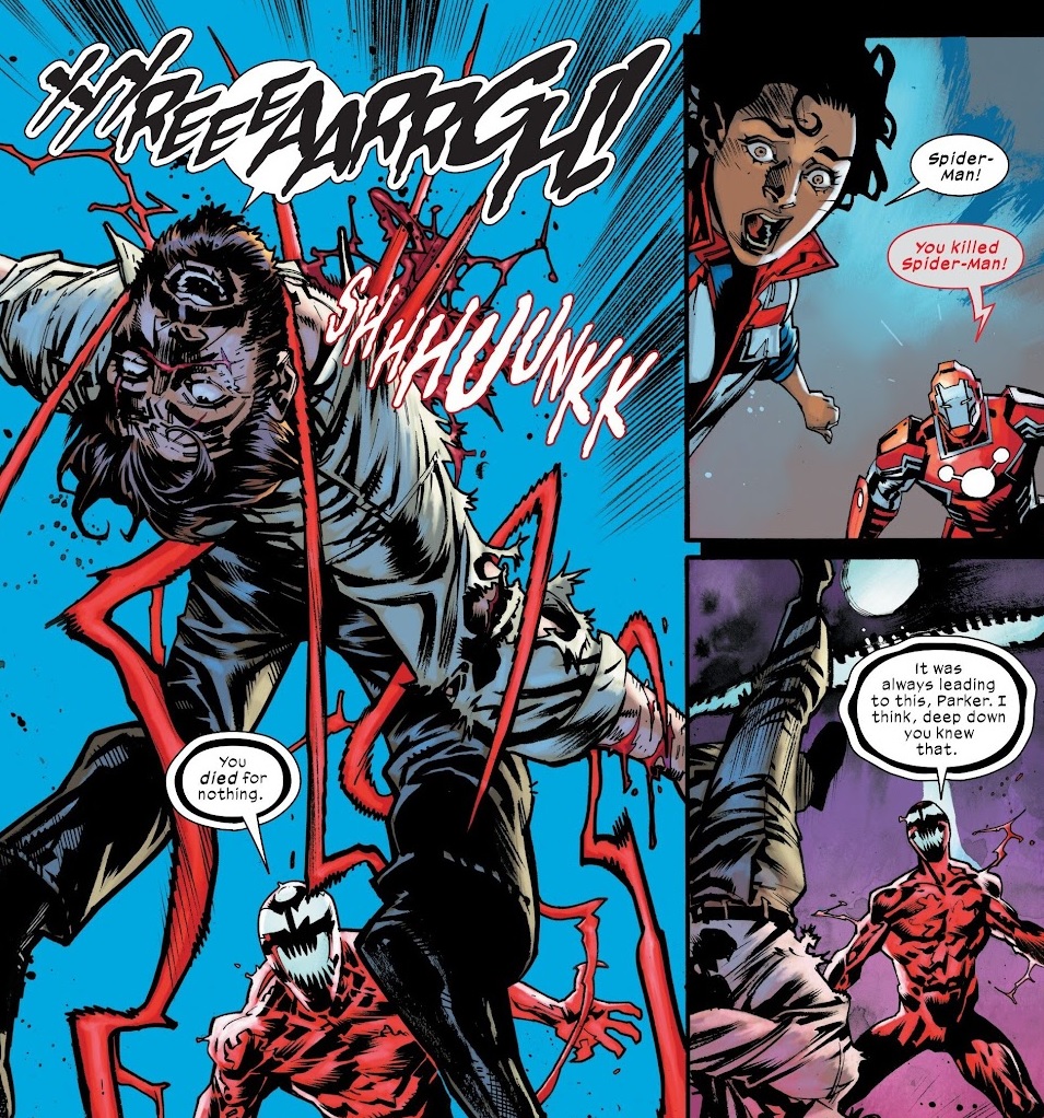 >>736899208>Carnage who killed Ultimate Hickman Spider-Man was not Cletus>this means Cletus is aliveSays no one ever. Cletus is dead again. While Carnage doesn't exist in Insomniac, Cletus does so I guess you want Insomniac Cletus to be killed too by posting that panel.