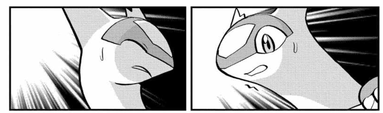 >>736926969Yeah, even if you know what the Pokemon look like it can take a second to interpret an action panel with dynamic posing/perspective like that.