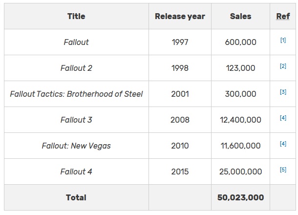 >>736924068These are the original sale numbers from the 90's, I assume, this is the only way they make sense, because fucking everyone owns Fallout 1/2 on Steam, millions of people.