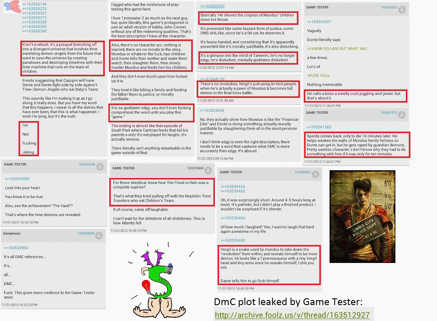 >>736971143>color coded enemiesDE>squirrel cum demon circlesWitch and why are you desperate for her to suck off a squirrel?>alex jones bossBill o reilly>abortion sniperIgnoring the context for the scene>removing the human part of danteKat>fedora vergil being LITERALLY "i am 14 and this is deep *tips fedora*Wrong>combichrist in general sucks assYou have no taste.