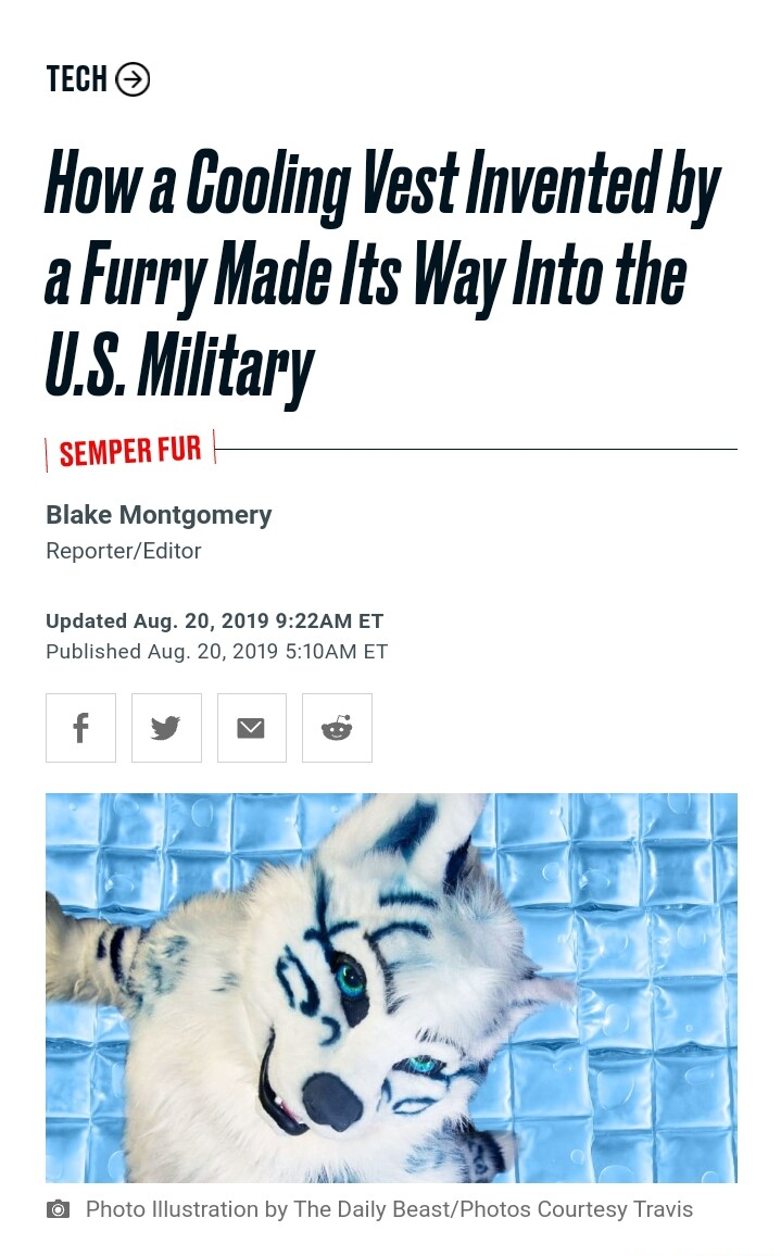 Those full-body fursuits tend to get very hot and uncomfortable for obvious reasons, so naturally people put quite a lot of effort into figuring out the best ways to keep themselves cool in there. I can 100% believe that a furfag would come up with some novel cooling vest that works better than the kind of stuff available commercially (and probably cheaper to boot).