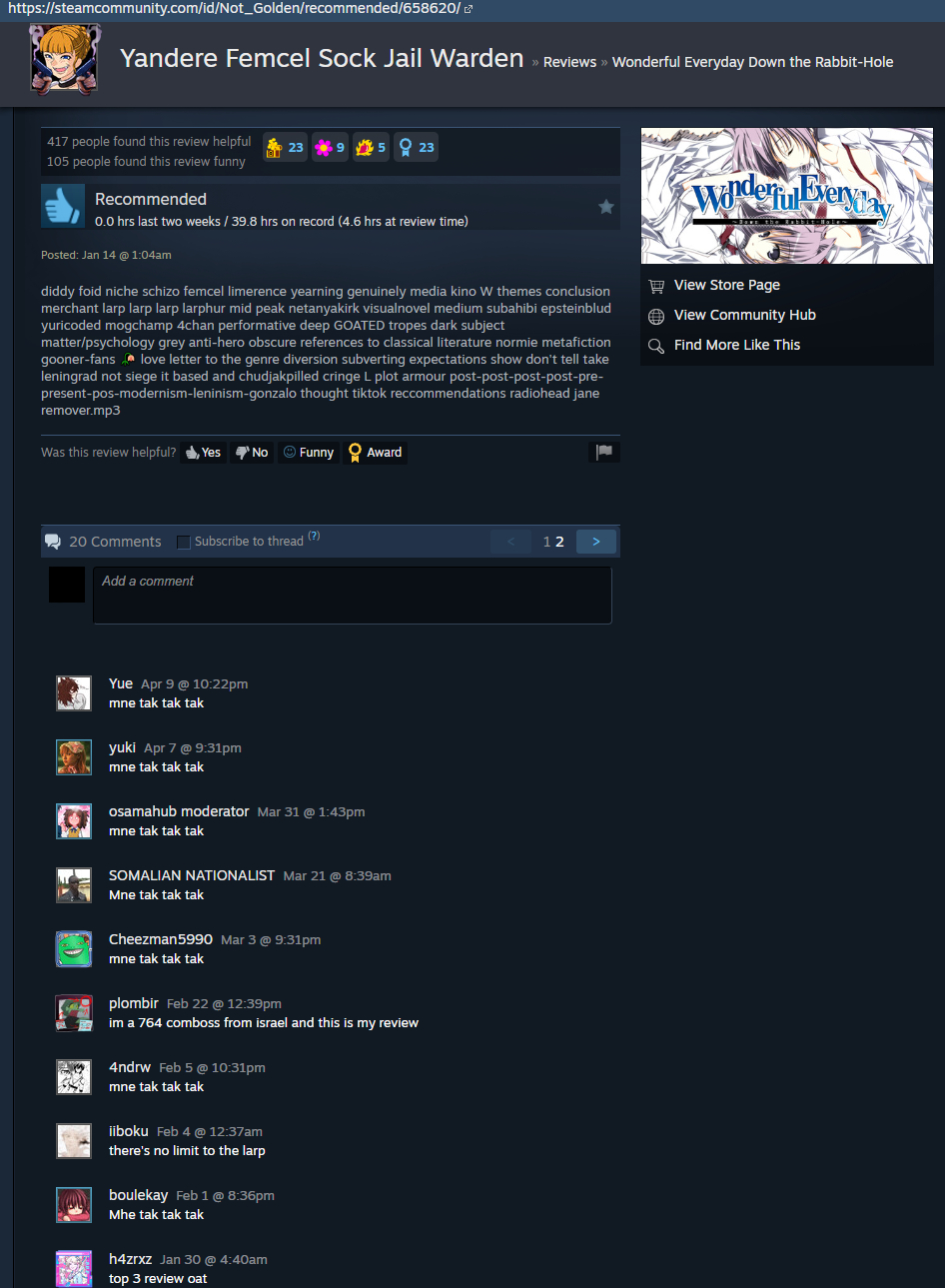 >tfw even /v/ can write a better review, one word per post