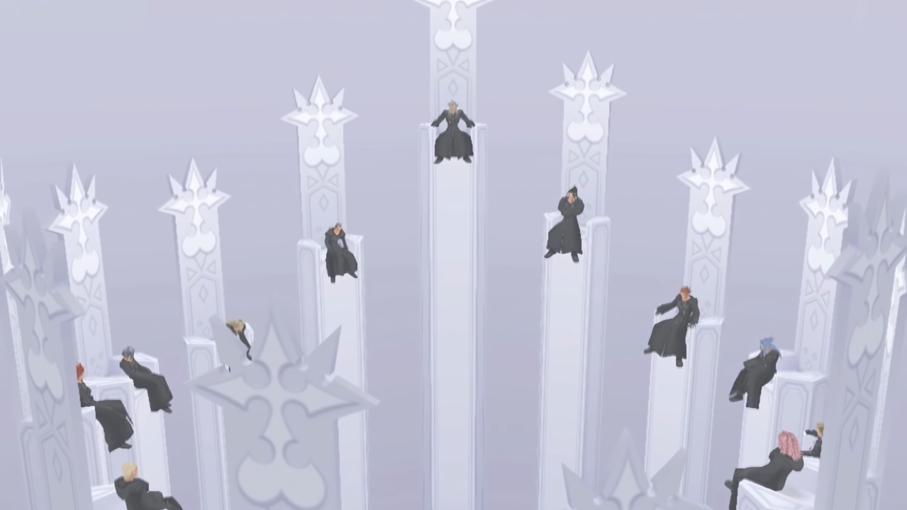 >>736955665>I - Xemnas (Hollow Bastion Scientist/Keyblade Master)>II - Xigbar (Hollow Bastion Guard/Ancient Keyblade Master)>III - Xaldin (Hollow Bastion Guard)>IV - Vexen (Hollow Bastion Scientist)>V - Lexaeus (Hollow Bastion Guard)>VI - Zexion (Hollow Bastion Scientist)>VII - Saix (Hollow Bastion Scientist)>VIII - Axel (Hollow Bastion Scientist)>IX - Demyx (Past unknown)>X - Luxord (Chauffeur within 'Unreality' who wound up crossing over)>XI - Marluxia (Ancient Keyblade Wielder, Dandelions leader)>XII - Larxene (Ancient Keyblade Wielder, Dandelions member)>XIII - Roxas (Keyblade Wielder)>XIV - Xion (Keyblade Wielder)
