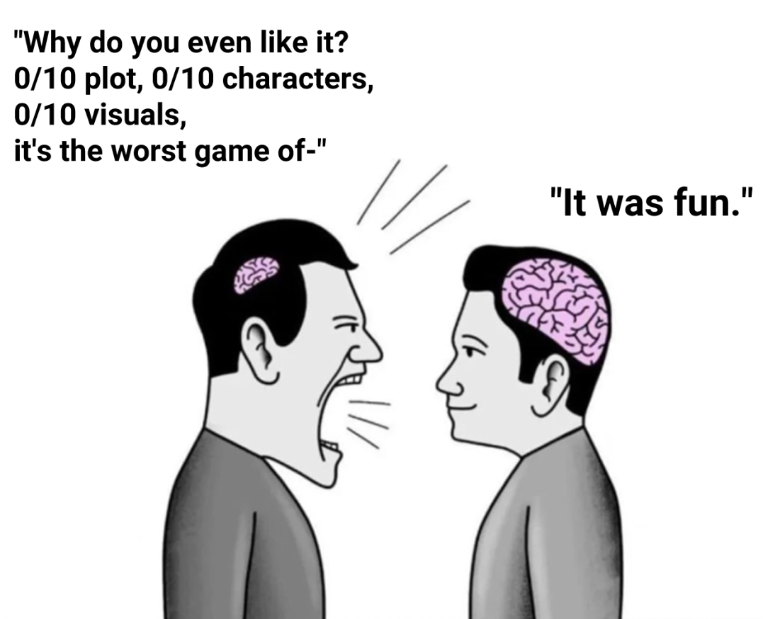 People would enjoy a lot more games if they stayed offline Kinda like how shitty pizza is still good when you don't have some bitch whining that it's not as good as some luxury gourmet pizza place for $31 a slice