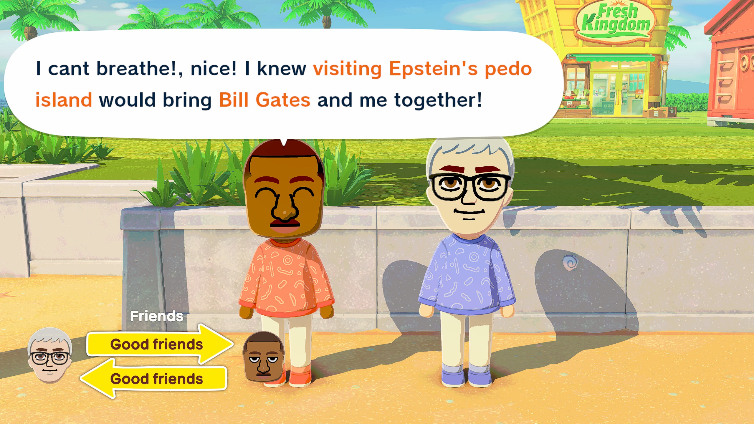 People whose entire island is current meme characters are considered NPCs in my eyesIf you shit is entirely Garfield, Shrek, Obama, Charlie Kirk, Dream, shit like that, you know, the sort of It's-topical-and-funny-just-to-say-their-name humor for 14 year olds on the tiktokies and twittards, you don't qualify as a living being with a soul