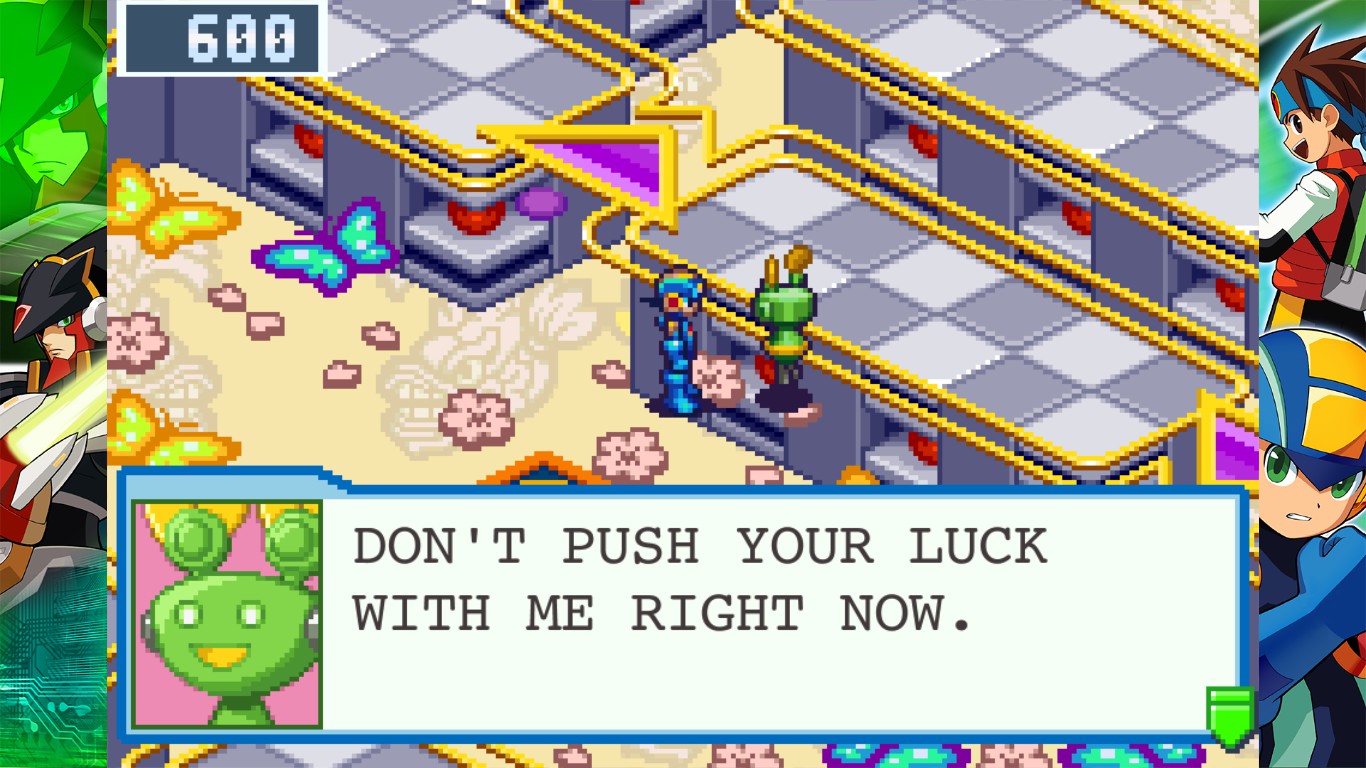 I had a vision for MMBN7 once>Lan's son Patch is a bully at school because his dad is a big shot and they're rich so he treats others poorly.>Realizes he's lonely.>Asks dad for his custom Navi.>Lan punishes Patch by giving X to his soon to be rival.>Patch gets depressed, feels betrayed etc.>Lan gives him Zero.exe instead. A virus turned navi in a reformatting experiment to try and solve the virus issues.>Patch and Zero.exe are both treated with mistrust. Other navis don't trust Zero because he was a virus.>Slowly learn to redeem themselves and save the world.>Megaman Battle Network Z (the 7 is inside the Z in the logo)