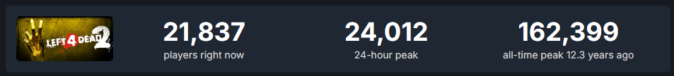 >>736976838It held above 30,000 for a month, but it's been losing like 1,000-4,000 players a day.It never reached the 80,000 it had at launch past the weekend. It's been no where but down and day old "24 hour peaks" on StDB for ages now. It's honestly shocking Bungle and Sony haven't thrown the towel in yet. It's clear Cyro and all their temp shit isn't bringing people back in massive numbers.