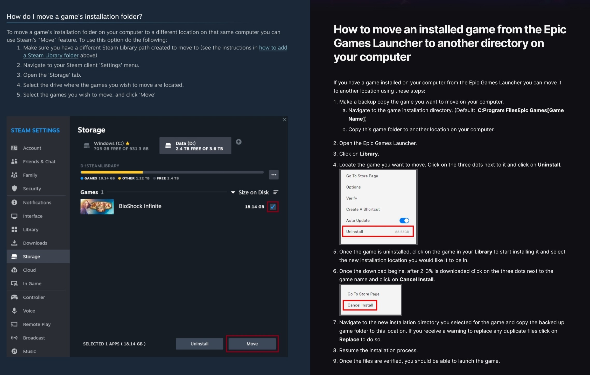 >you have to essentially trick EGS into thinking it re-downloaded the game itself if you want to change the install folder