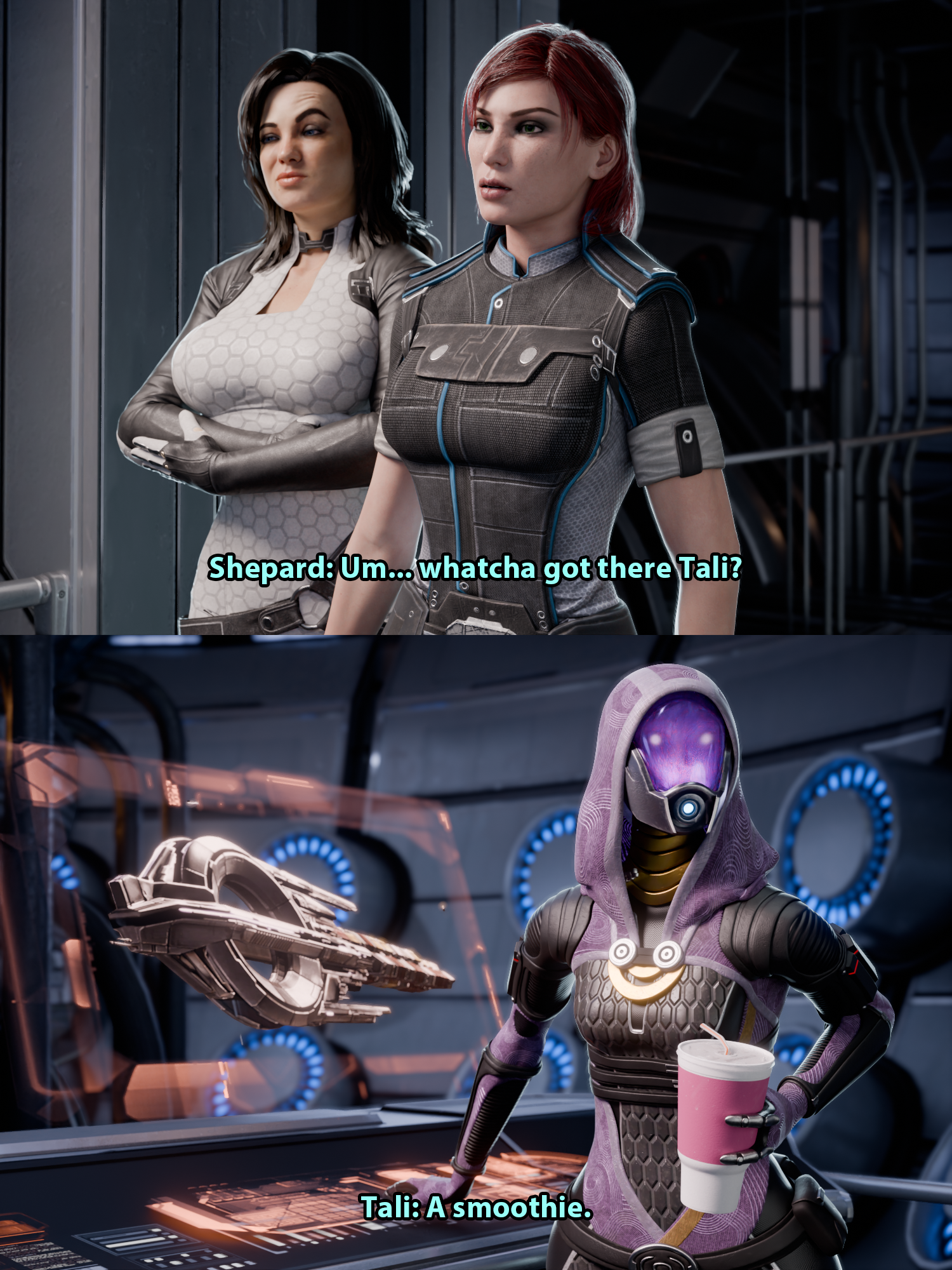 So many questions. Why did they choose a human to be the next Spectre? Why are Citadel resources stretched so thin? Why don't any Quarians ever secede and run off to an inhabitable planet? Why does an illegal terrorist organisation like Cerberus seem to have more resources than several alien races combined? And most importantly: Are you still mad?