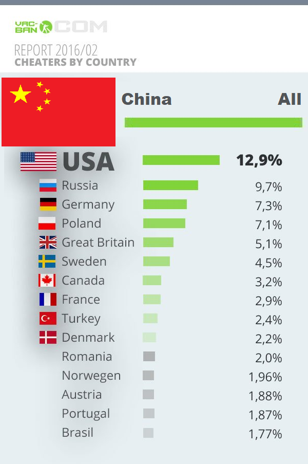 >>736982239Firewall China. Prohibit matchmaking with anyone whose ping is high enough to potentially be someone circumventing the chink firewall with a VPN.That will make cheating tolerable overnight.