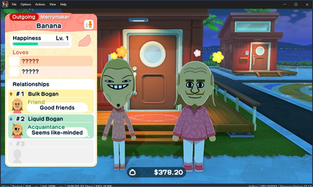 Game runs fine and is pretty fun. Anyone else suffering from shader issues when emulating? Eden crashes on startup, so I'm using Ryubing on the newest canary release. Vulkan turns the entire game into rainbow vomitshit, and OpenGL works fine but grass reflections are gray which looks fugly. Anyone else with similar issues or maybe solutions? I'm on a 1050Ti.