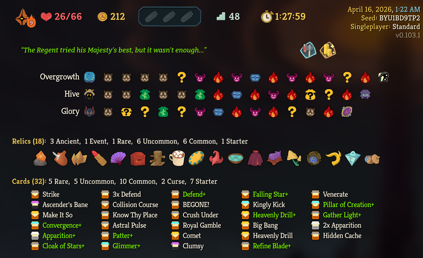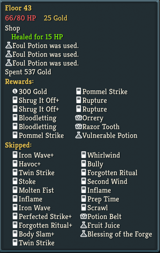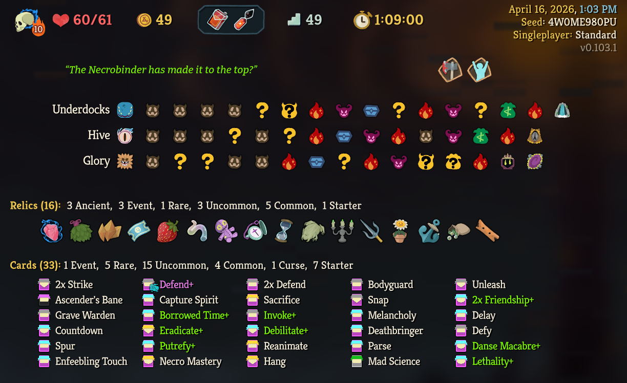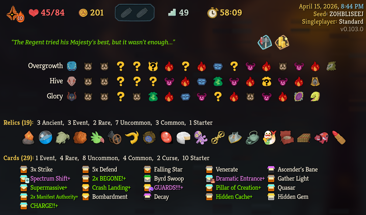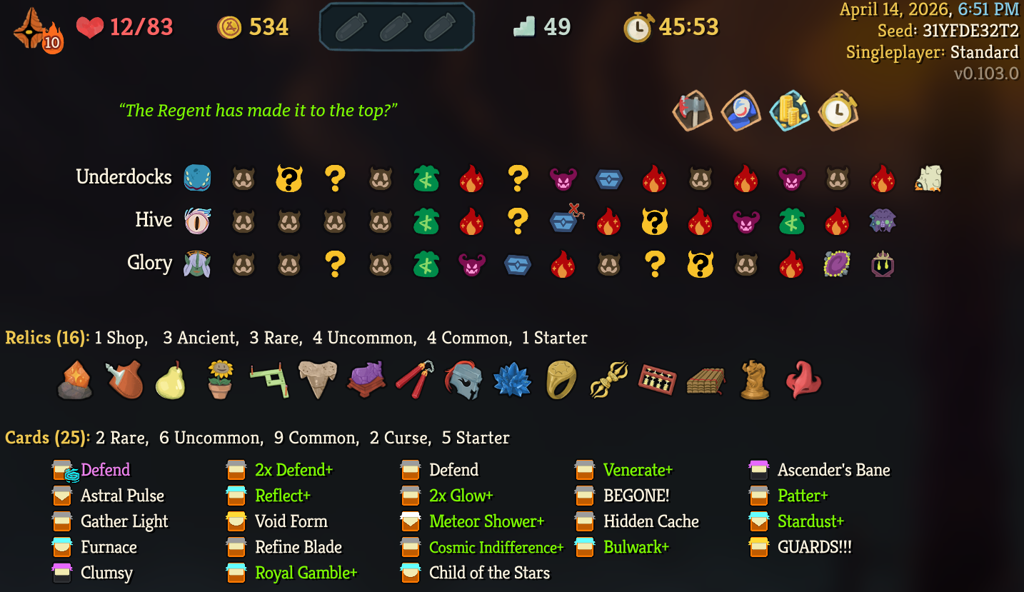 Finally got my first Skelly win after like 12 consecutive losses. Turns out it's piss easy to go infinite with her. I've gone to a4 with Regent mostly off of Void Form, I fucking love that card.