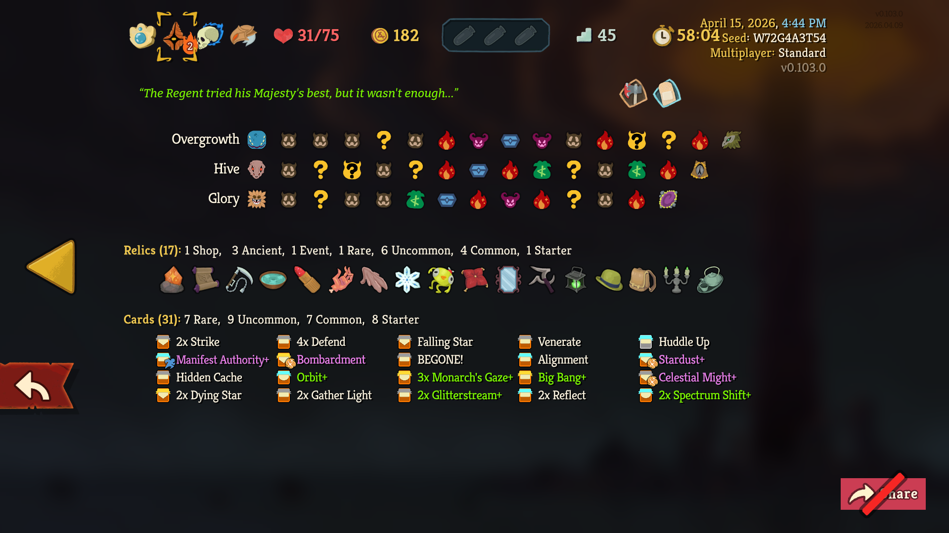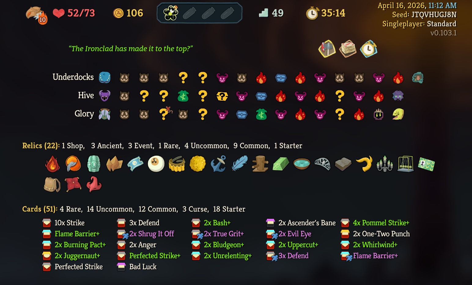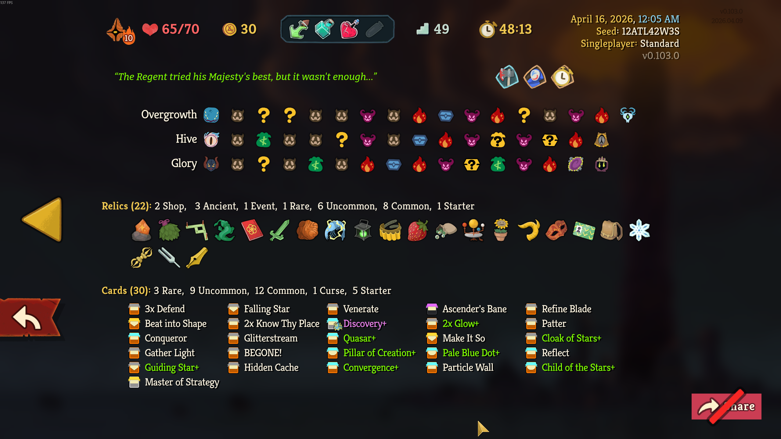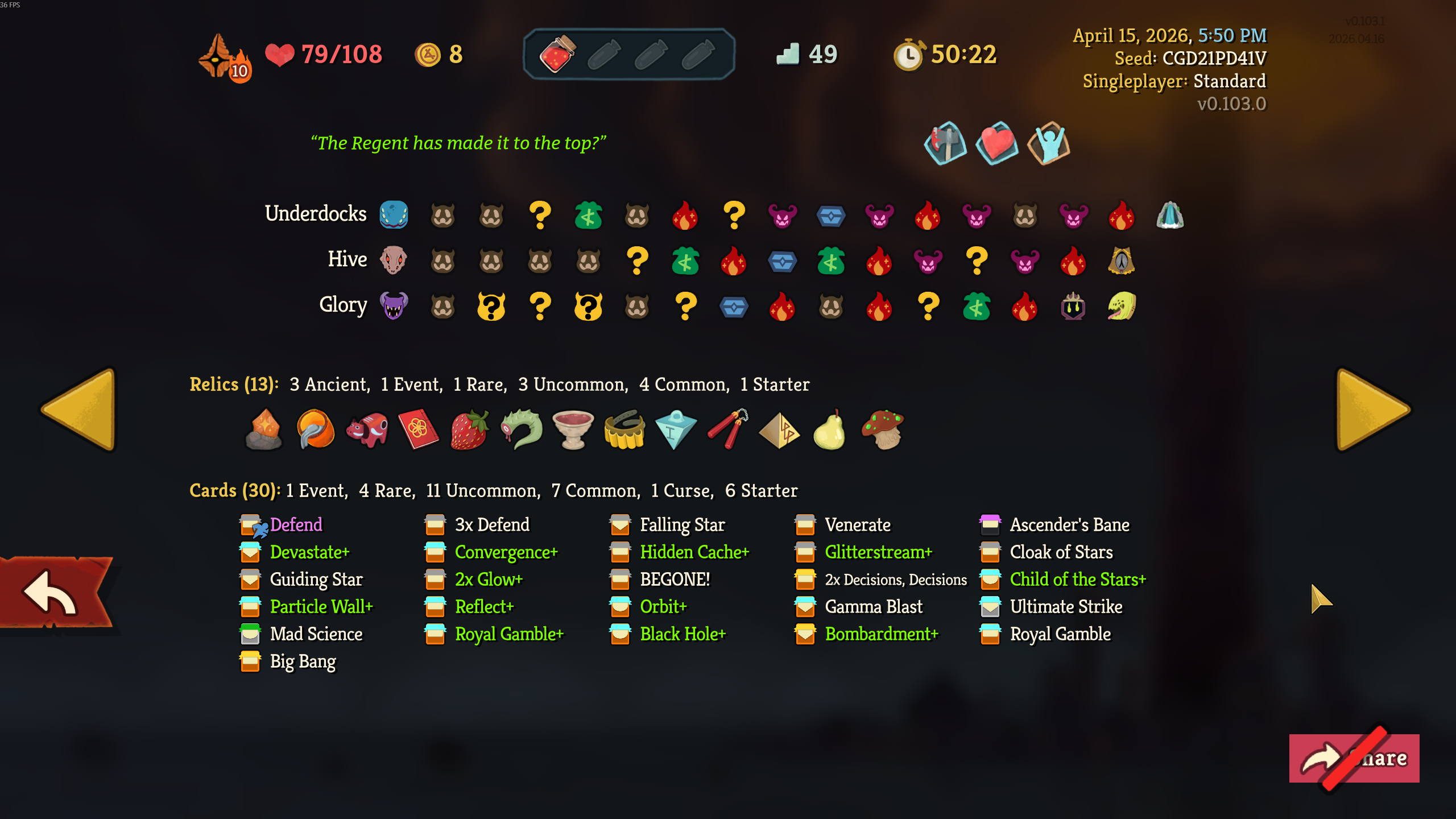 Finally got my first Skelly win after like 12 consecutive losses. Turns out it's piss easy to go infinite with her. I've gone to a4 with Regent mostly off of Void Form, I fucking love that card.