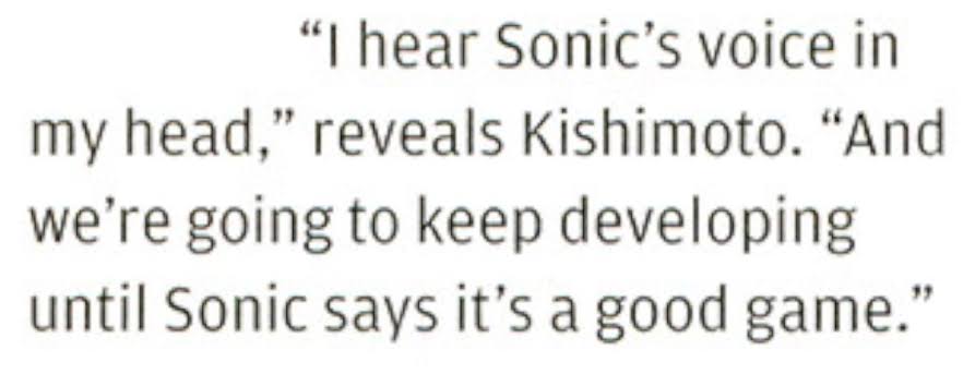 - when the Saturn launched, he refused to work on another Sonic game despite Sega needing one. He decided to make Nights instead. Sega of Japan couldn't say otherwise.
