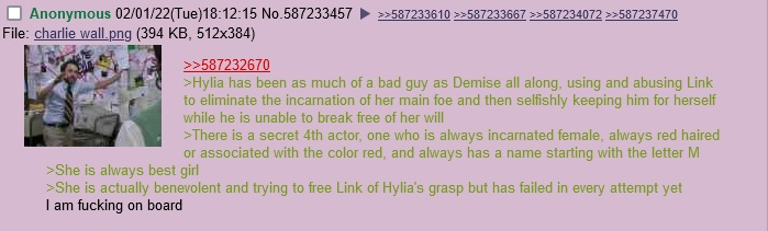 >>737023331>one, single girl to be Links canon girlfriend for the rest of the series foreverMalon. Farms/ranches are ubiquitous medieval staples. Farm work is physically intensive enough that, if a Link starts there, it makes his physical ability believable. She's also frequently connected to horses, so if Link needs an incarnation of Epona, who better to go to than her? And whenever the series decides to do something weird, it would be fun to see how 'the farmgirl' gets adapted to the setting. Like, what would a WW Malon be doing? What does New Hyrule's prized ranch look like, in a world that's actually creeping toward its own Industrial Revolution?Zelda has become too complicated and, frankly, too obligatory. Also I hate Skyward Sword and Fujibayashi, so I must summarily deny her to spite them both. My apologies to the unironic Zeldafags.Ruto is a solid pick. So is Saria, but she's a much harder sell for obvious reasons. The issue is that they, as a Zora and a Kokiri, have much more prerequisites to appear than Malon. Ruto is the Zora princess, so she mandates a large enough water area to house a fresh new Zora's Domain, maybe w/ a new King Zora, with every appearance. Likewise, Saria is a Kokiri, so she needs a big forest and/or new Lost Woods that houses their settlement with every game she appears in, along with a Deku Tree.In the case of Saria and Ruto, their requirements aren't outright dealbreakers. The biggest issue is that exoticism burns up fast. The first time, it's special, it's different. The tenth time? The audience is bored of [race], they want them to sit out a game now. What about [other race], they'll say. But Malon? Good luck petitioning to ditch humans/Hylians. And even then, she's a cute, pleasant character that cares about you. A simple blueprint, but an effective one, easy to follow and easy to adapt. You're welcome, Miyamoto.This is all just going by the girls in OP, selecting from across the entire series would be WAY harder.