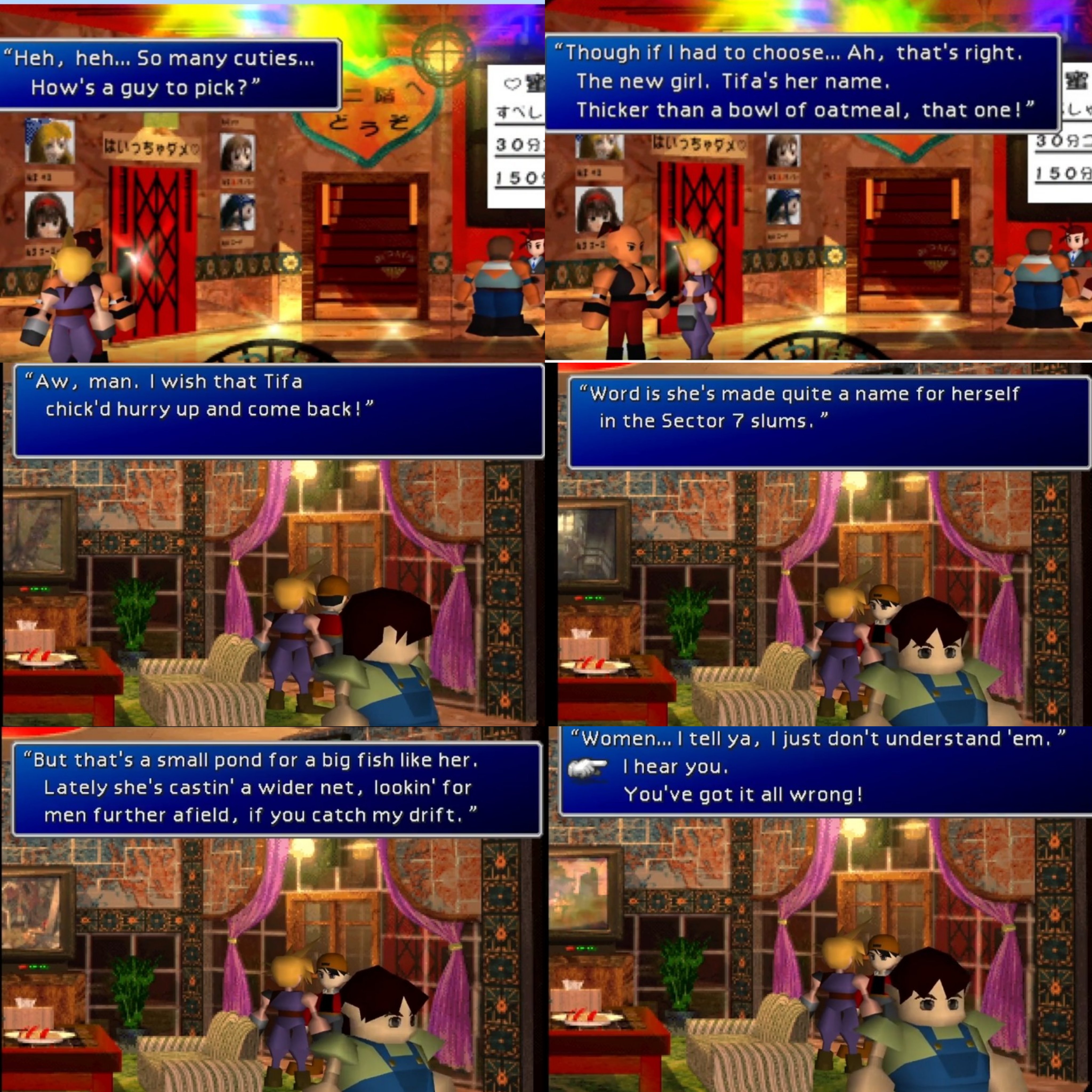 >>737044360The 7R timeline clones really are the most dumb vapid anime drones ever. They have not even half the IQ points of the real FF7 cast.