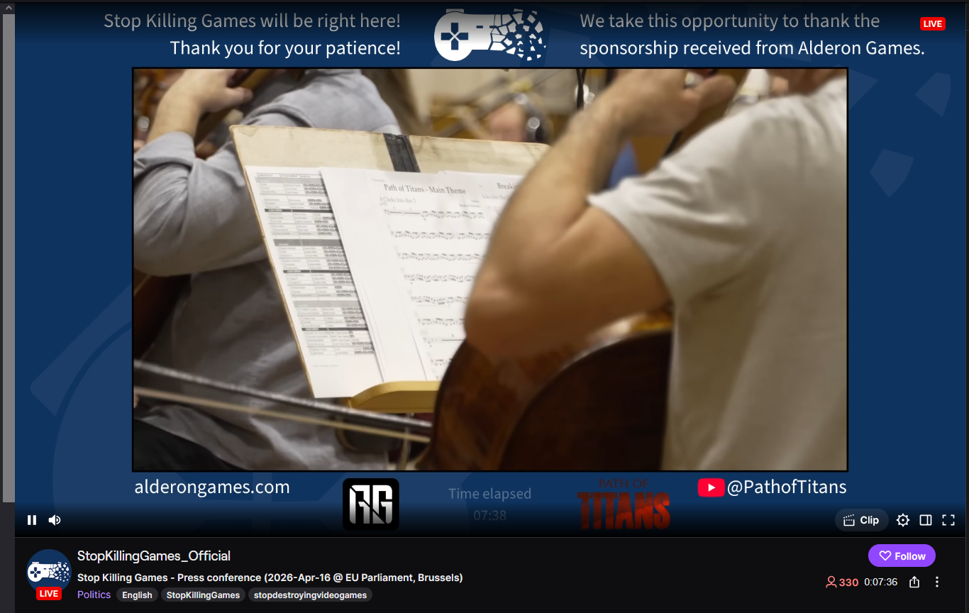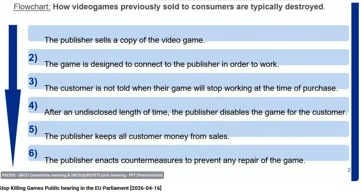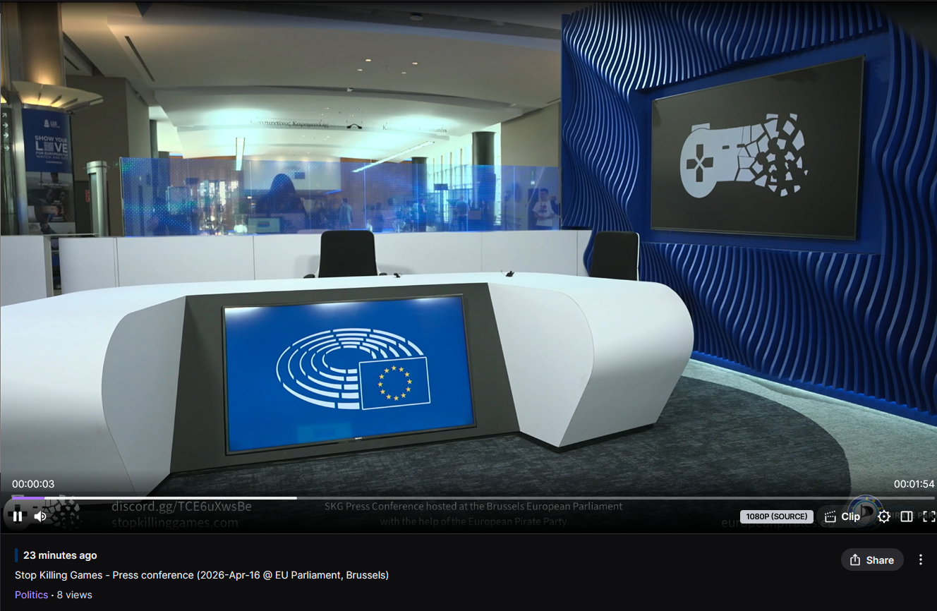 Stop Killing Games public hearing in the European Parliament https://multimedia.europarl.europa.eu/en/webstreaming/committee-on-internal-market-and-consumer-protection-ordinary-meeting-committee-on-legal-affairs-com_20260416-1100-COMMITTEE-IMCO-JURI-PETI